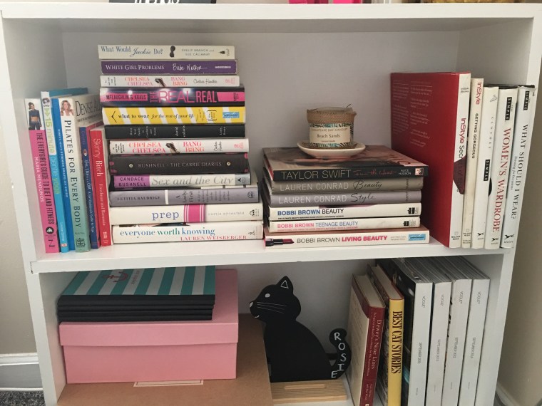 My closets have zero storage and are very tiny, making it difficult to store shoes. Now all of them fit in the blue trunk. It was given to me as a present and has been a big lifesaver. If the shoe doesn’t fit in the trunk, it’s time to throw out some shoes. I have become very committed to purging everything in my life. I’ve had the bookcases since before I was born! They were originally built ins for my parents living room in a house they had before I was born. They’ve stayed with me since they were in my baby room and with a new fresh coat of paint, they are good as new!