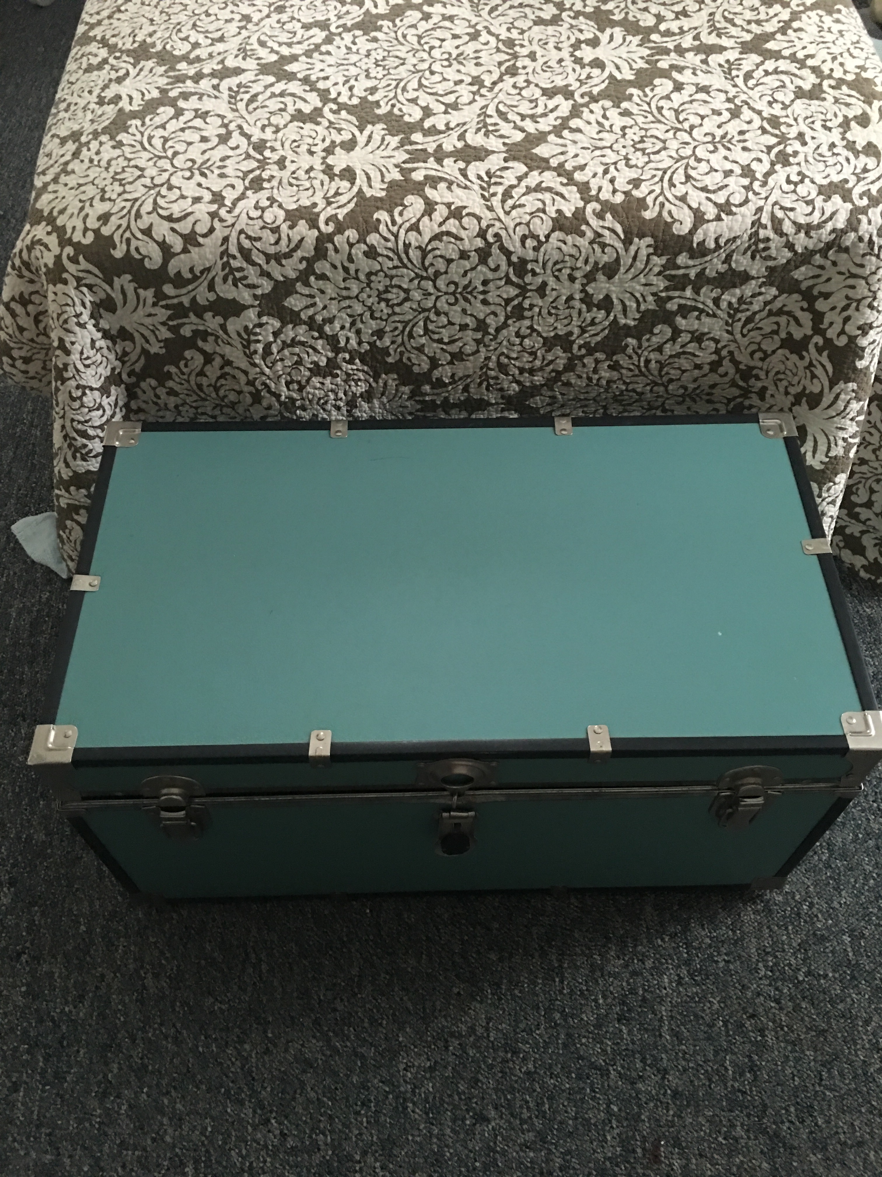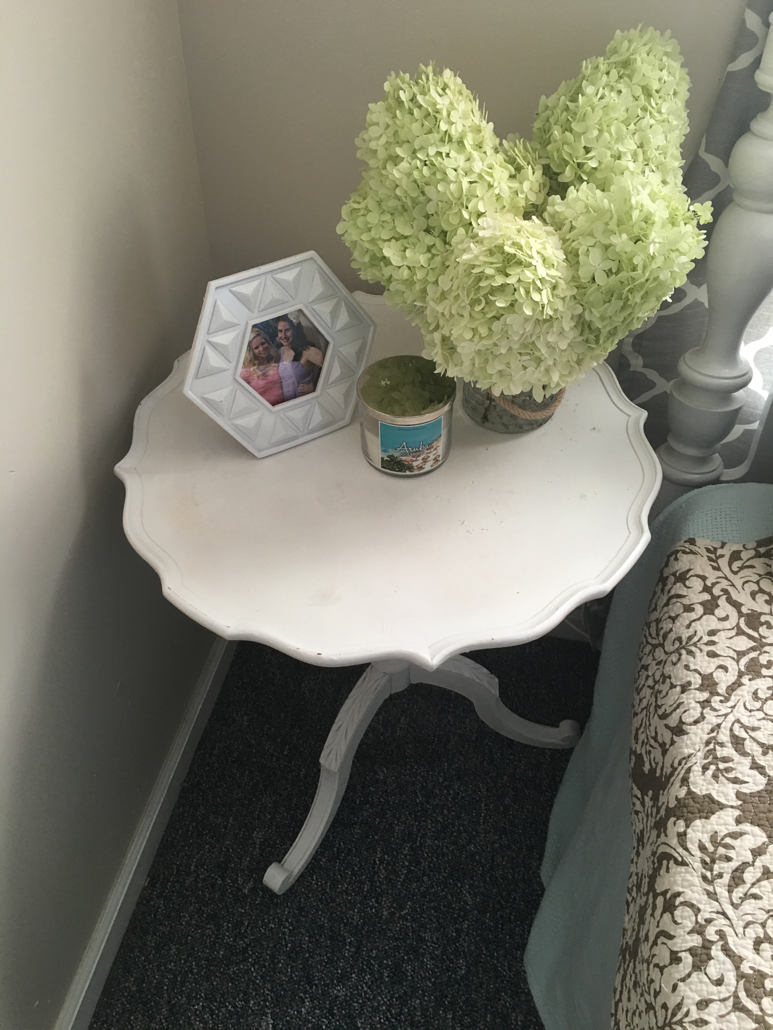 Something I need to invest money in is furniture. But with the move happening in the near future and I’m still unsure where I will be living, now is not the time to buy furniture only to have to pay to have it moved later. So now I am using my furniture from the 1990s to make an adult room. There is some furniture I cannot wait to get rid of, but some of these pieces I will keep forever. With a few coats of paint and rearranging, I love how it turned out! I found the round table at the town rummage sale for $5 and painted it white to make it more modern. The blue trunk at the end of the bed has been a lifesaver. I had been eyeing a table like that at HomeGoods for months but didn’t want to spend so much on it. Lucky me!!