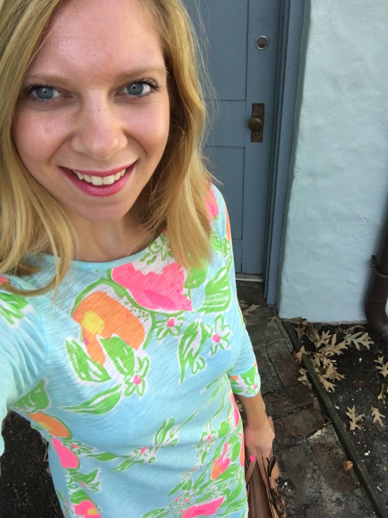 One thing I greatly dislike about summer is that I have to go into the office on Saturday mornings. As someone who greatly enjoys sleeping until noon, only having one day to sleep in all week is torture! On Friday night I went out with some old friends and we stayed out until 2am. I never go out on Friday nights because I have to be up early for work on Saturdays. The night before I curled my hair, but because of the lovely humidity the next morning the curls had fallen and it turned into a nice wave. I woke up late (what’s new??) and rolled out of bed, threw this dress on and sprayed my hair with hair spray to add body. I dusted some bronzer and blush on and went with a bold pink lip because it makes me look awake and ran out the door!