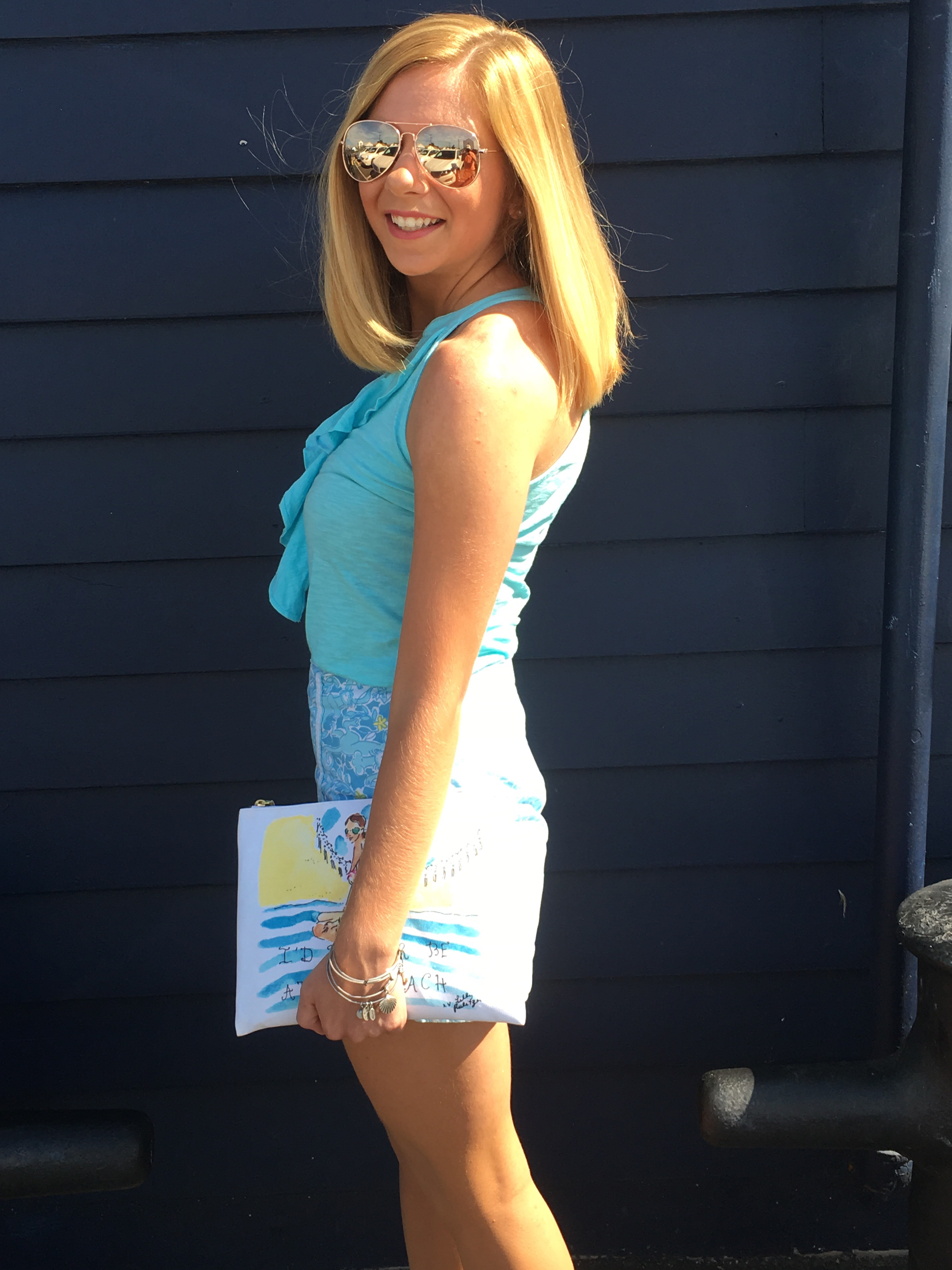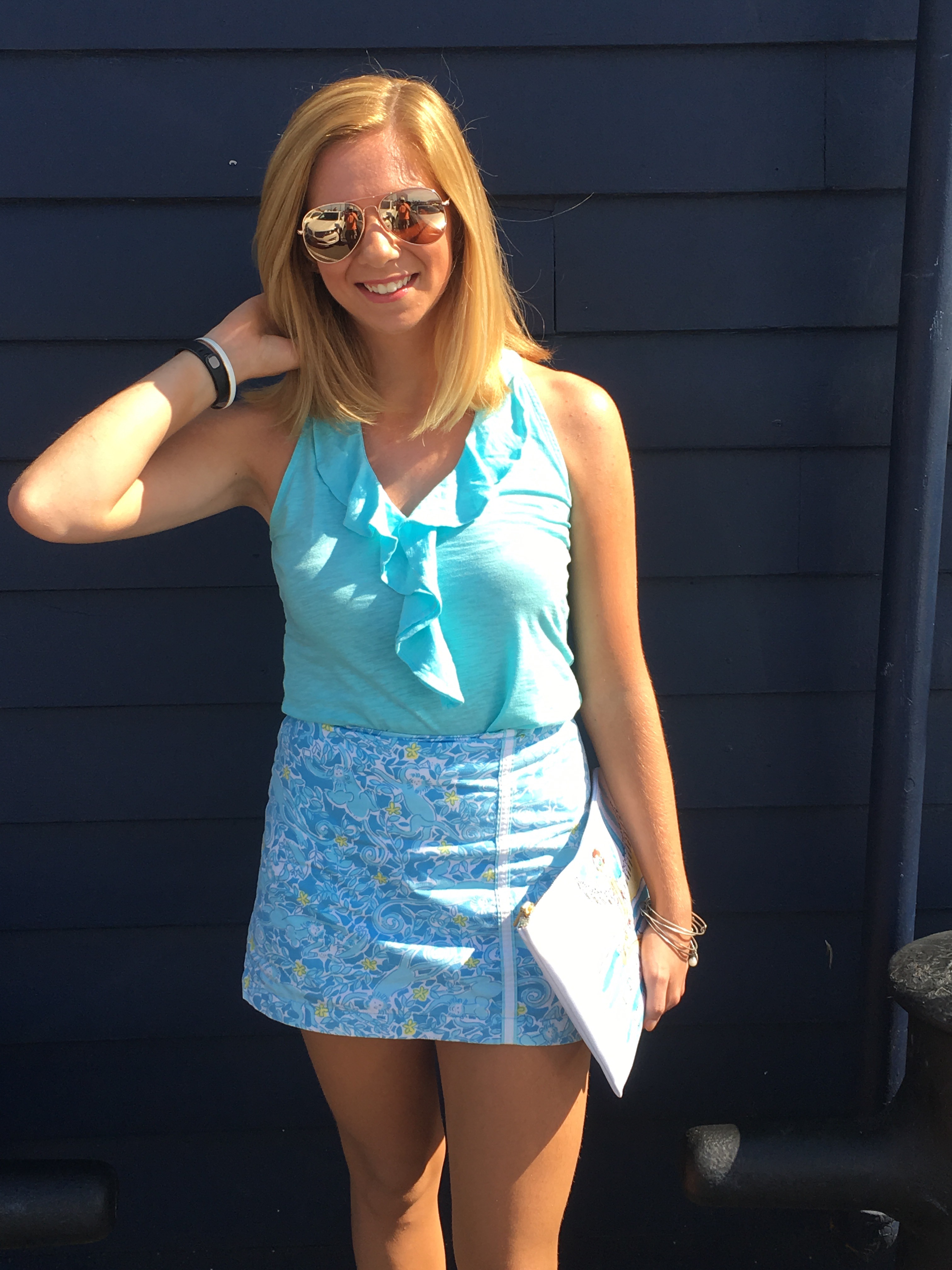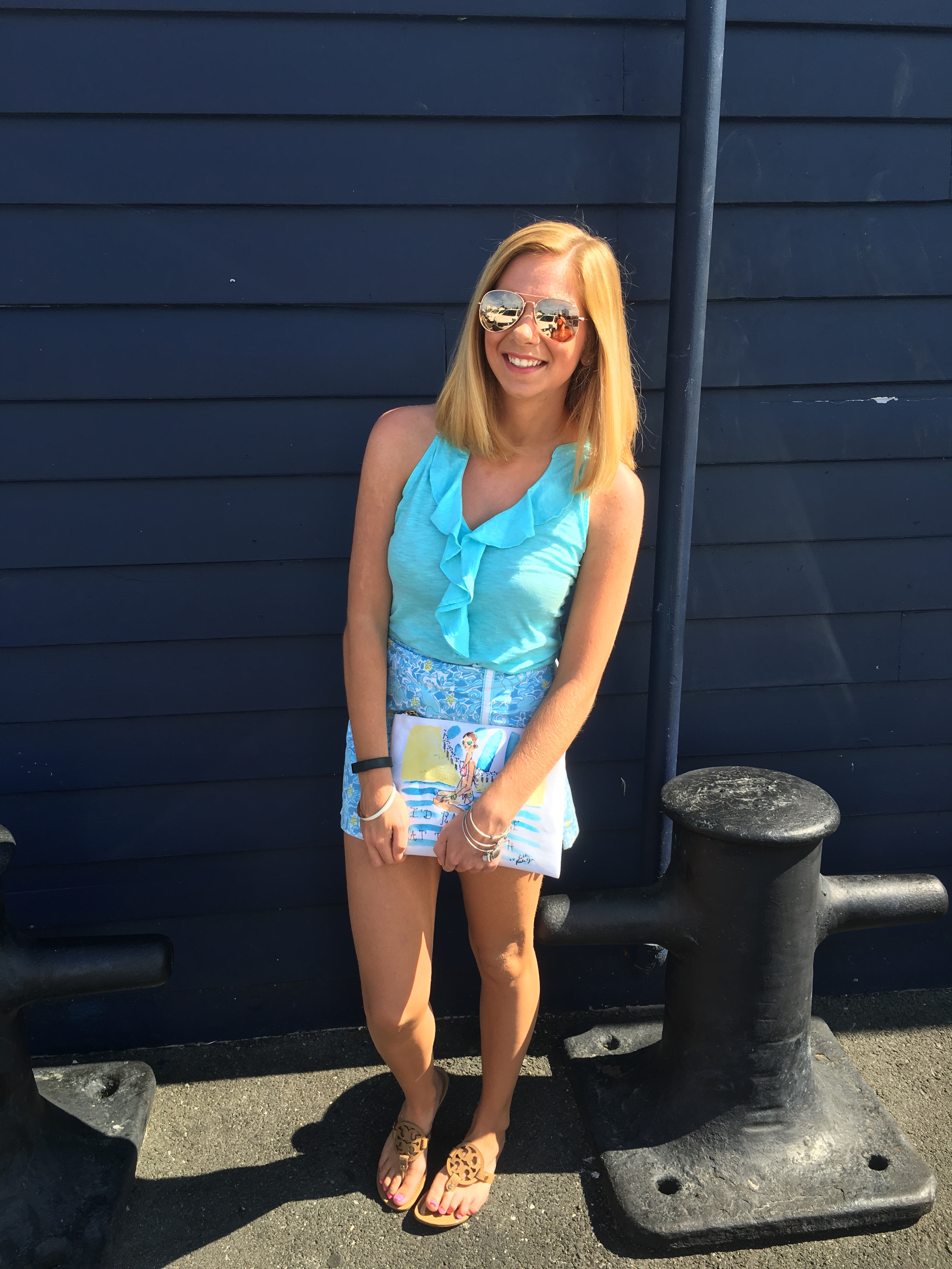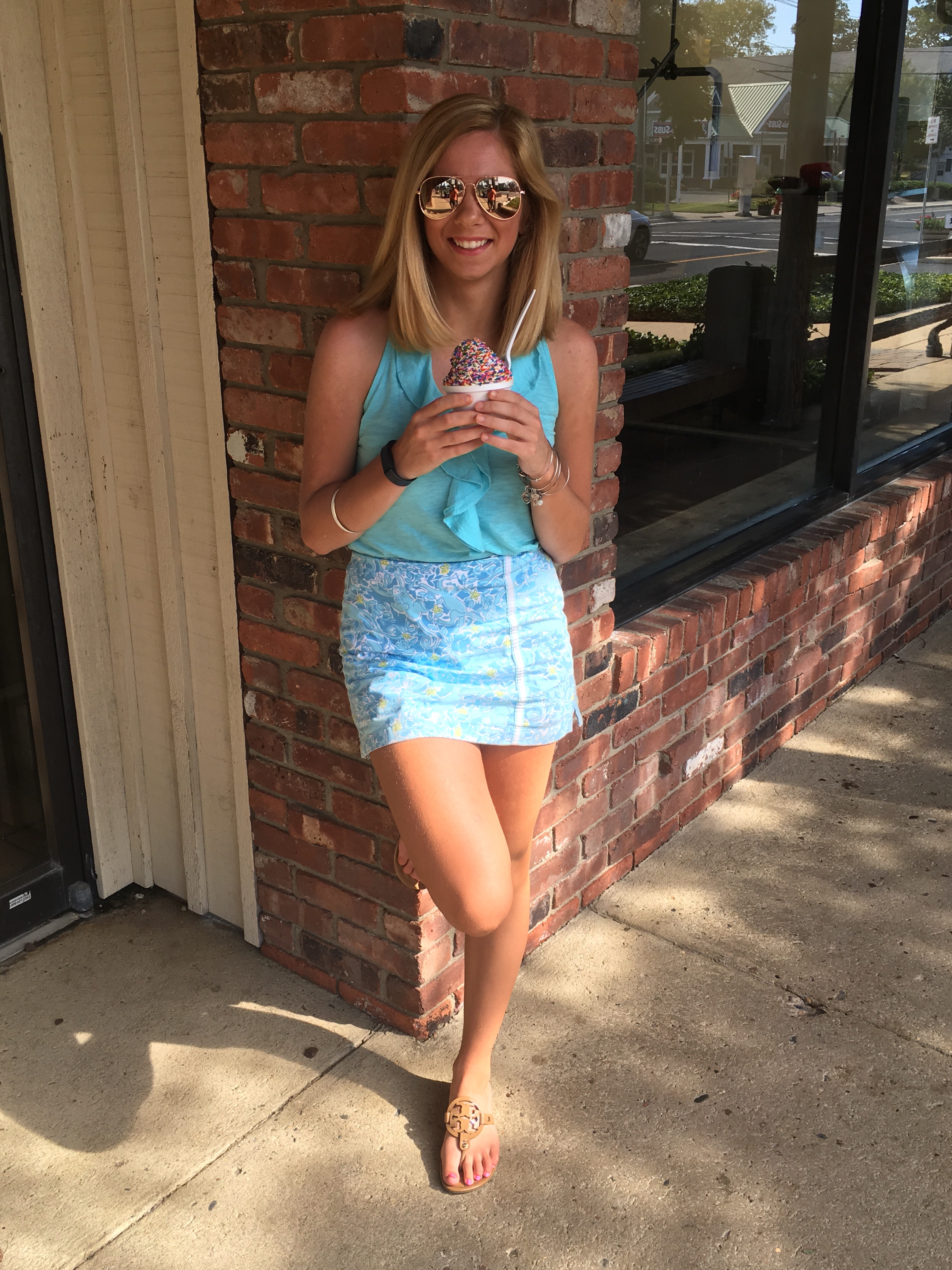 The shirt and skirt are old from Lilly that I found at my favorite consignment store Back on the Racks. The tank was from last season and the skort is really vintage (was only $7!). If you like Lilly but don’t want to spend the money, check out Poshmark because they always have affordable Lilly! I got the sunglasses at Nordstrom during the Anniversary Sale for $12! I have red Raybans and wanted to get a more neutral aviator and I love the rose gold look. (I bought a lot of stuff when I went and didn’t buy any of the sale items, I clearly did the sale wrong!). While I went to Nordstrom for the sale I bought two pairs of Tory Burch shoes. I did a lot of swiping my credit card that day at King of Prussia! I wanted a nice sandal that was neutral that I could wear with everything. After months of looking at them online I finally got them. The bag is old as well from Lilly, but I love the size of it because it really does fit everything!
