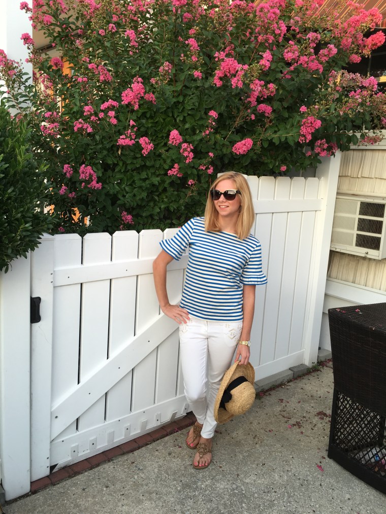 I saw a few bloggers wear this shirt over the summer and I knew that I needed it in my closet! With these hot days we have been having I haven’t worn pants since May, so this chilly Labor Day weather gave me excuse to pull my white jeans out of storage and wear this shirt. I am not ready for summer to be over!