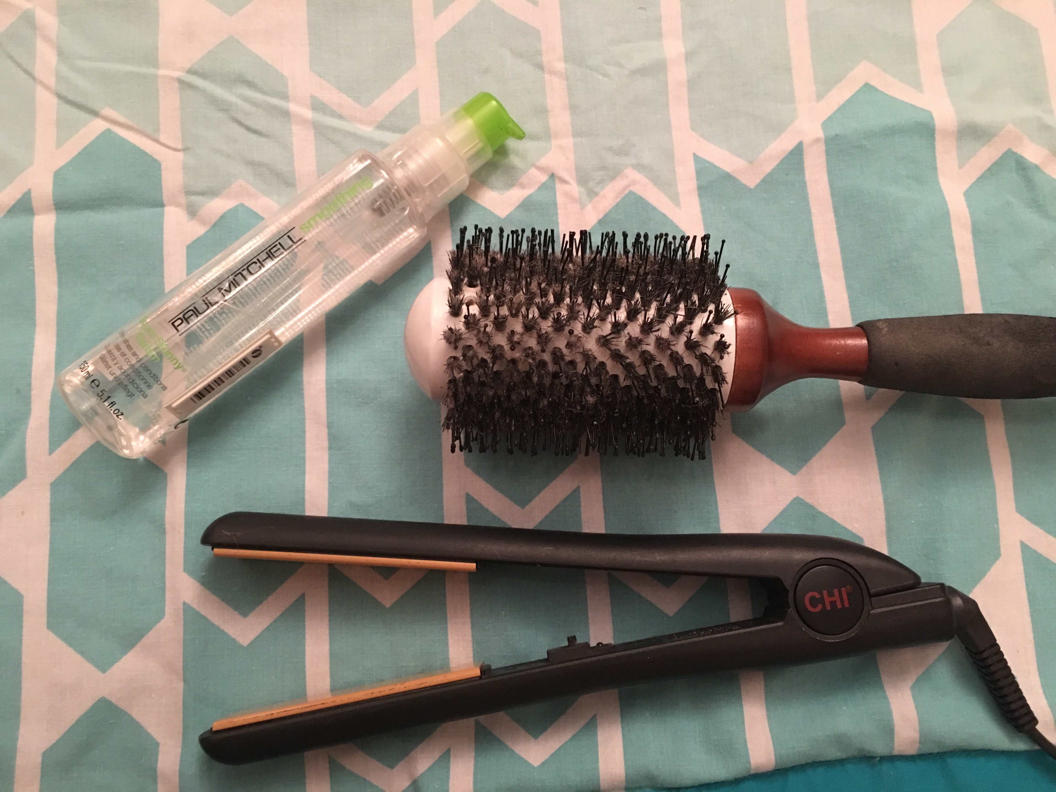 A few sprays while my hair is still wet and I let it air dry. Then I straighten it with a round brush using my Chi hair straightener I have had since high school. It squeaks but it still works!