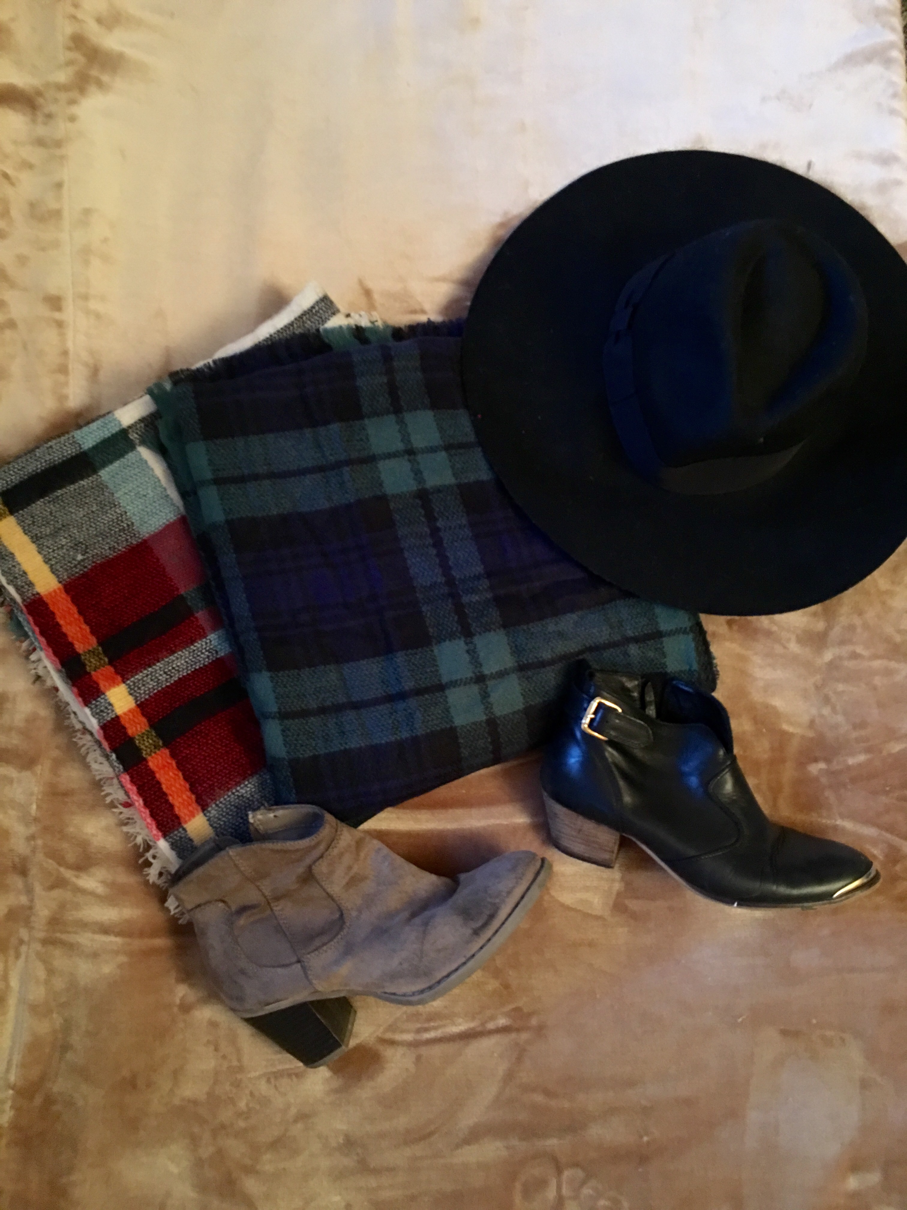 These two blanket scarves are for sale at Target in the Bullseye/ dollar bin for only $7! I bought a blanket scarf at Nordstrom last fall for $20 and to me it feels like the same type of quality. The boots are from last season and I’m craving chilly weather so I can wear them! The suede ones are from Old Navy I got years ago in summer clearance for $5. Old Navy is always copying big fashion for affordable prices. The black ones are from Aldo and the touch of gold make them look fancy. Luckily big floppy hats are still in! I got my black one at Nordstrom last fall and Target has them for cheap right now.