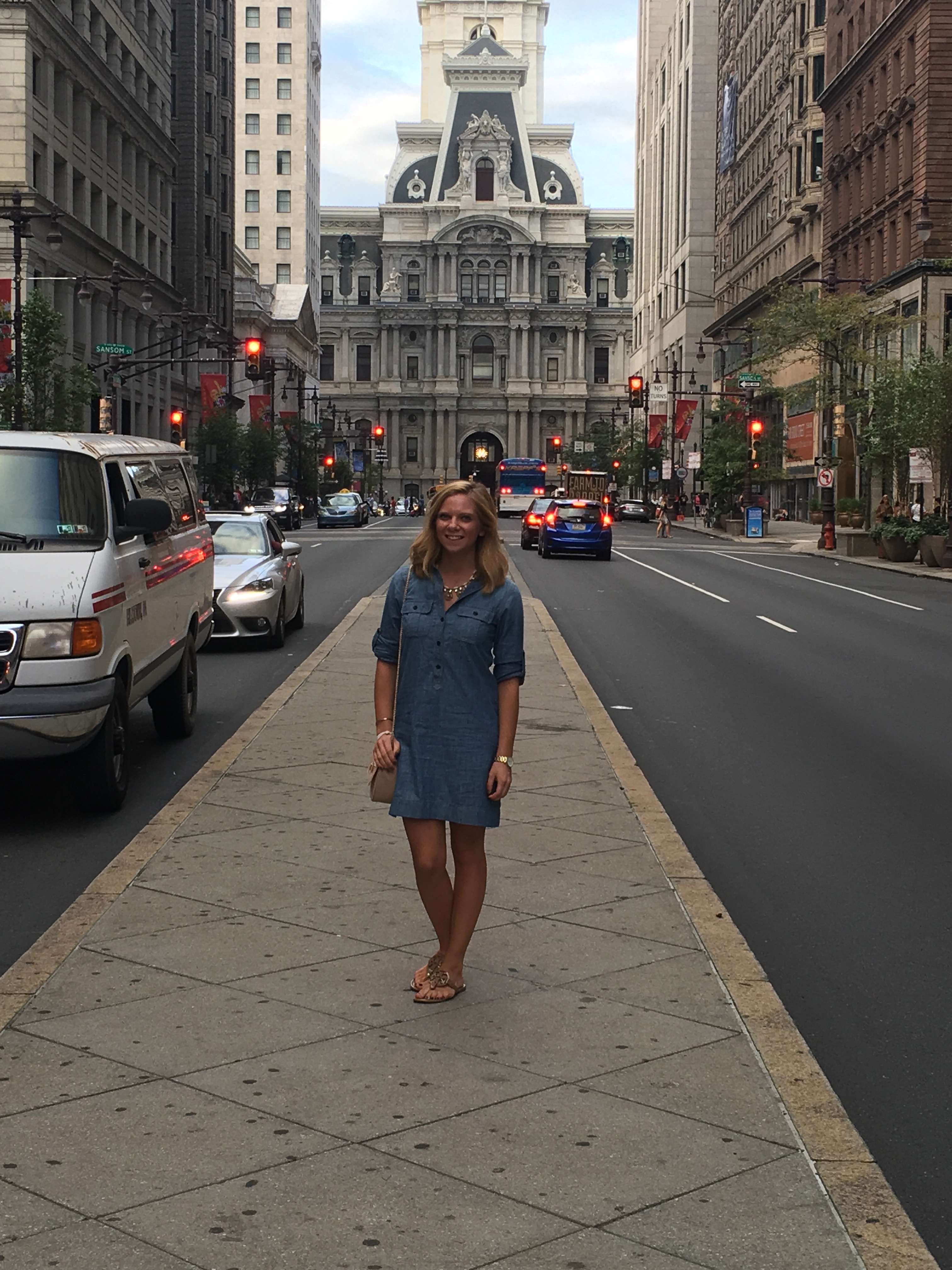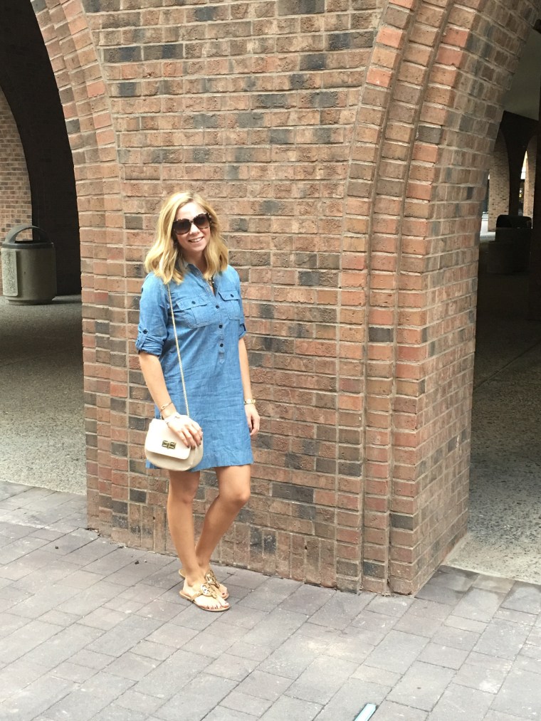 Last week there was a break from summer weather and the mornings were very chilly. It is that awkward time of season every year when no one knows how to dress. Yes, my fall scarves are out of storage, but it is still too warm to wear them. The sweaters are folded in my closet, but I will die of heat exhaustion if I wear them. Living on the beach, the weather is always 10 degrees colder than inland. So trying to find an outfit for a day in Philly was rather difficult. When I texted some friends who lived there for a weather report they were very little help! Going through my closet I got sad because all of my Lilly and fun summer dresses are packed away in storage and now my closet is shades of black and grey. I had just given myself a spray tan so I knew I was not going to wear pants but trying to find a dress for fall is difficult.
