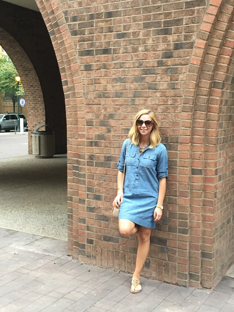 I was delighted when I found my long sleeve denim J Crew dress hidden in my closet. It was long sleeve but still comfortable to walk around Philadelphia in with the heat and chilly weather at night. During one of my trips to Target to buy some fall decor (a post will be up soon to share my treasures!), I found this handbag in the clearance section for only $8!! I bought an olive green one as well because I couldn’t decide! I saw a few other bloggers post photos with this bag and I didn’t have the money to afford a designer saddle bag, but this one is amazing quality and it fits so much stuff! RUN to Target now because you need this bag this season!