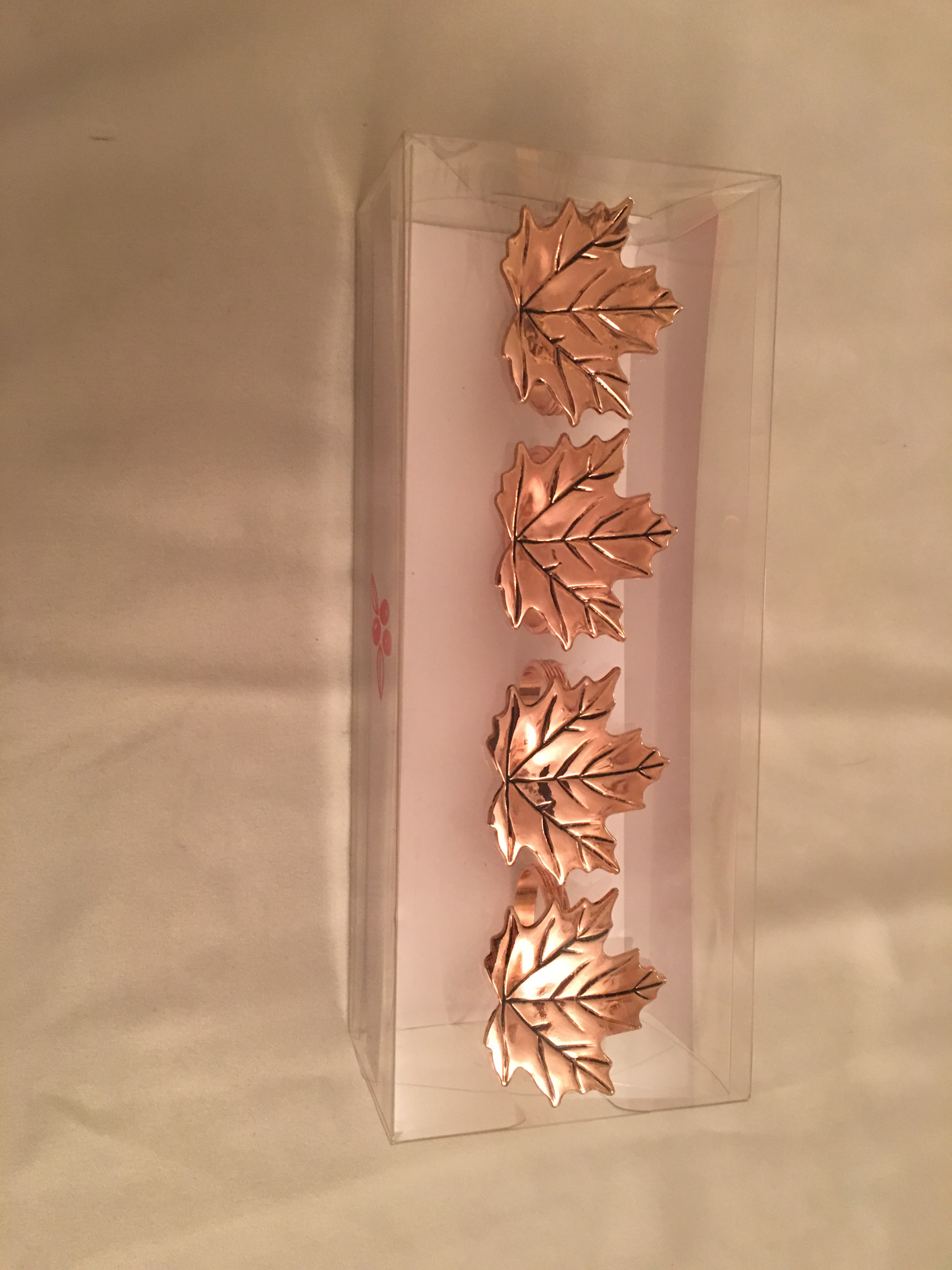 I don;t plan on having a dinner party anytime soon… but I know when I move out of my parents house I will be fighting over home items with my mother. I love her napkin rings and she has an amazing collection for each holiday. I couldn’t not get these copper leaf napkin rings!