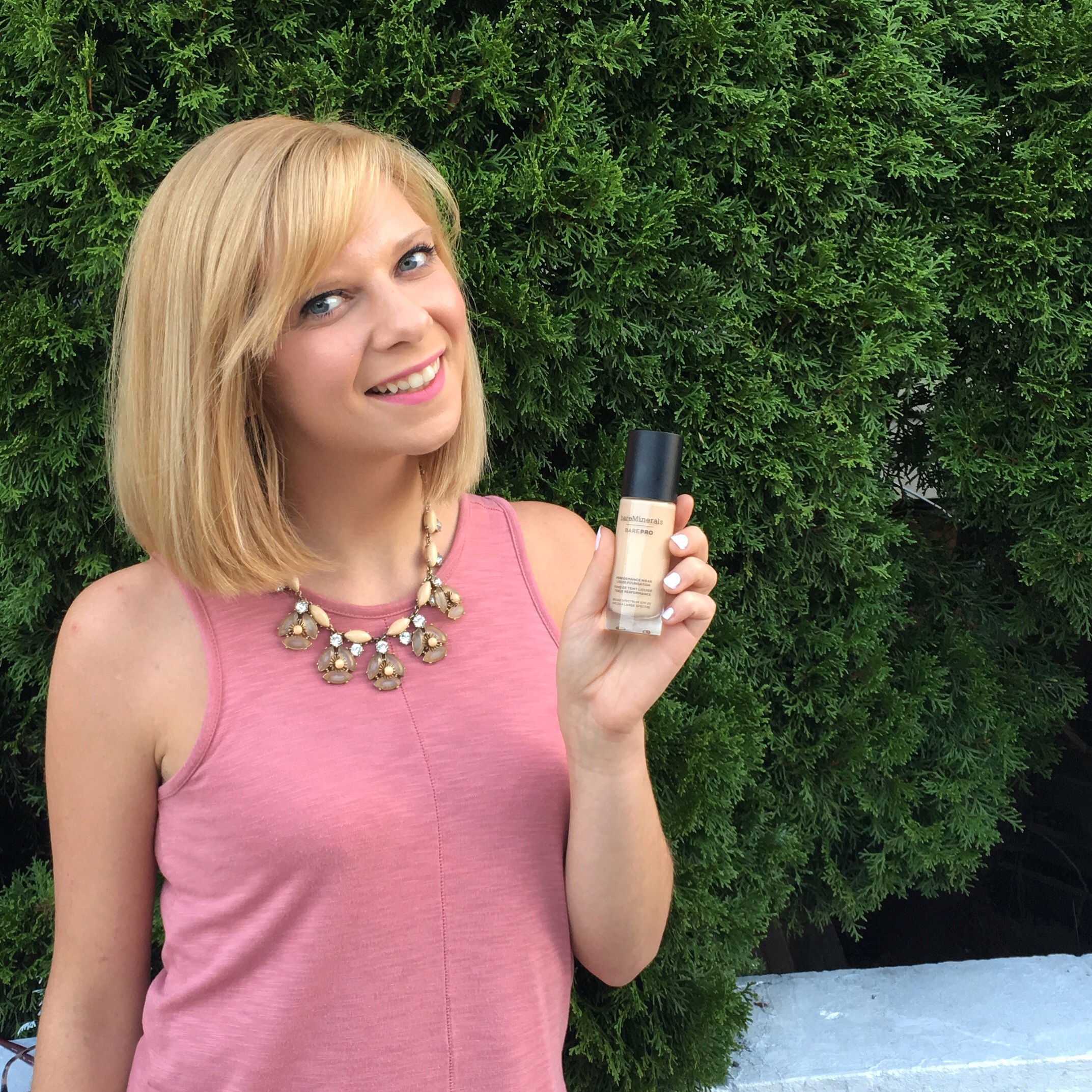 One morning, I was rushing (okay, so this is like every morning, but I was realllyy rushing that day!) and I didn’t have time to do a full face of makeup. I usually do a foundation, powder, bronzer, blush, a highlighter… it’s a lot of work to look awake! As I said I was late to work, so I pumped a few drops of the Bare Minerals on my damp beauty blender and just threw on a light coat of foundation to cover my acne, the dark under my eyes, morning redness, the previous days mascara that was now on my cheek and every other flaw on my face! I quickly brushed a bit of blush on my cheeks, did a heavy liner and mascara and was out the door. At lunch, I finally had a minute to look at myself and was really impressed for my five minute minimum getting ready that morning.