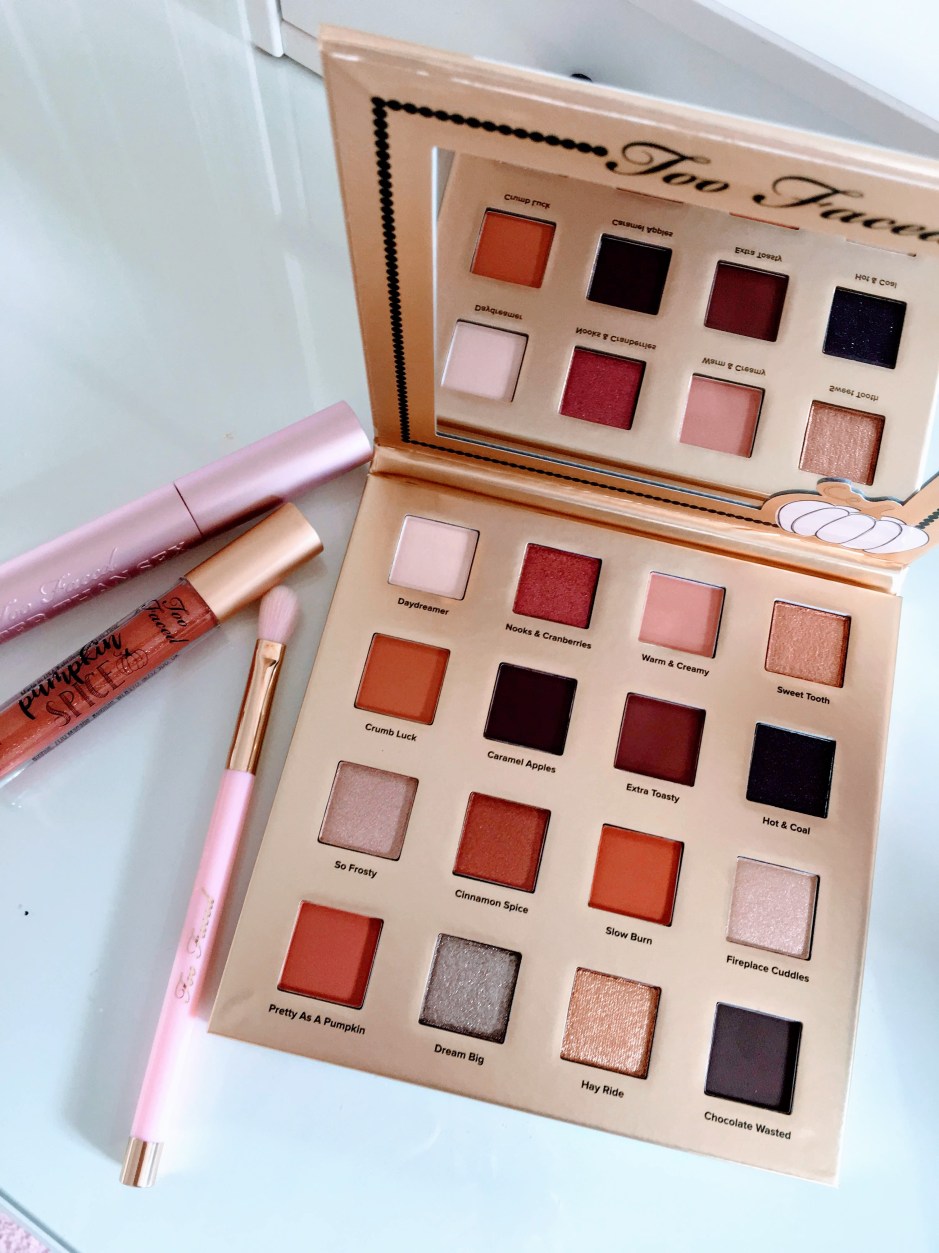 Sharing a recent purchase today on the blog! For a limited time, you can buy the Too Faced Pumpkin Spice eyeshadow palette and it’s just as amazing as you would expect! I’m trying to cut back on the eyeshadow palettes that I have because they can accumulate really quickly but I had to buy this one because of the extras it came with. The special edition collection comes with 16 pumpkin spice scented eyeshadows, a brush, Better Than Sex mascara and a Pumpkin Spice Ultra Plush lip gloss. You can get everything for only $49! The mascara alone costs $25!