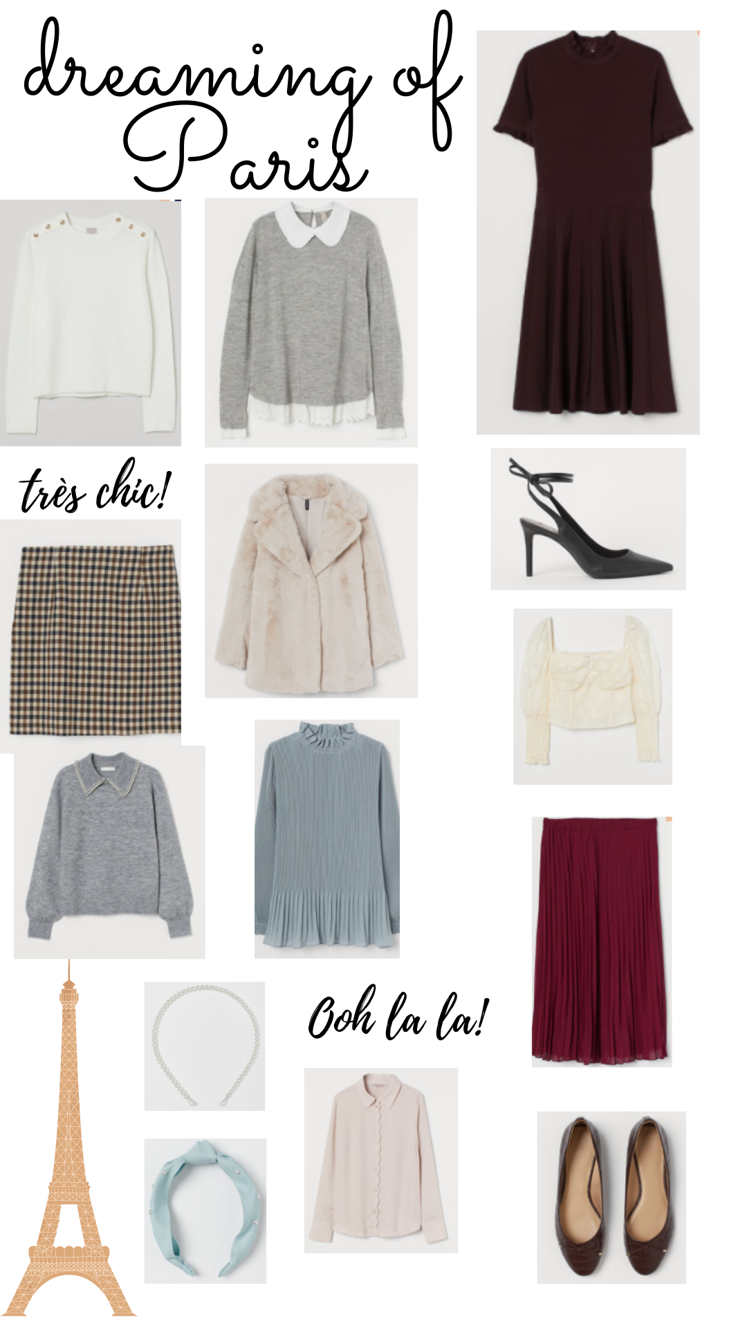 I’ve been playing French music on our Alexa’s around the house as a way to drop subtle hints to Jake that I really want to go to Paris once it’s safe to travel. So far I think it’s working because I keep hearing him from the other room saying “we will go when it’s safe!” I blame this recent Paris obsession after binge watching Emily in Paris in a weekend. I loved how Emily mixed patterns and had fun with her outfits while walking around Paris. It’s a city that encourages you to branch out from safe outfits and wear timeless chic pieces. Since we can’t travel to Paris anytime soon, I put together some chic pieces that I would love to pack in a suitcase and jet off to Paris in. For now I’ll just throw on a chic sweater and a beret as I walk to a bakery down the street to get a croissant.