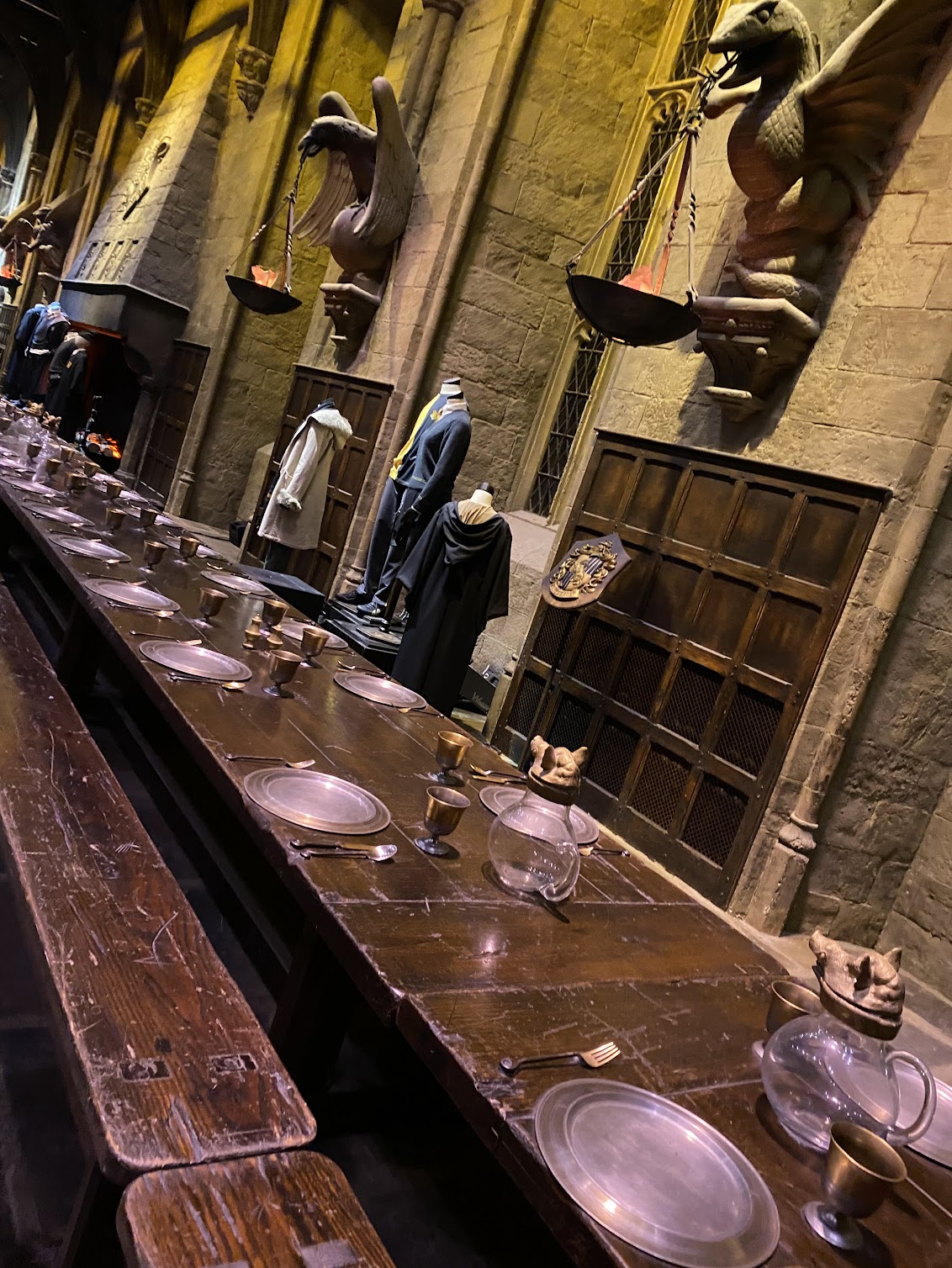 After tea, we then went through the doors to start the tour. I won’t give too much away but you start off in the Great Hall set and I was blown away by how big and magical it felt the minute we walked through the doors. The Hall had movie props set up and it really felt like we were at Hogwarts. The floors are the original stone from the first movie and were chosen so the stone would naturally age over time as they continued to film.