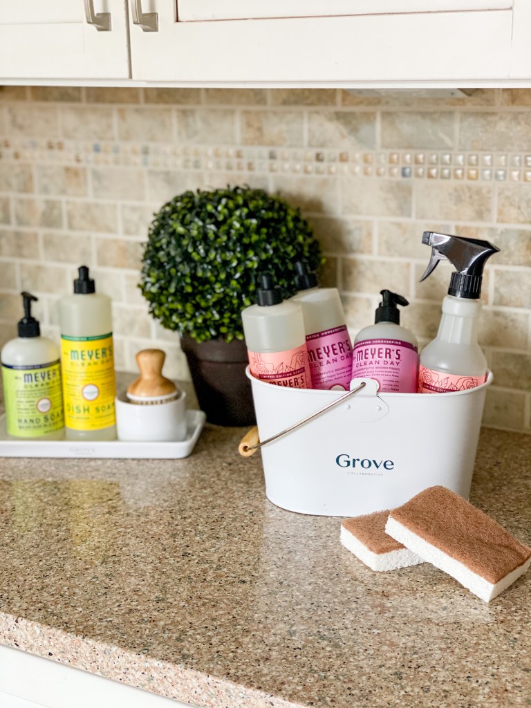 I have one of these on my kitchen counter right now to keep all our frequently used coffee, tea, and hot chocolate in one place. It’s an easy way to keep that kitchen clutter that you use daily organized in a pretty way. Add some faux flowers and a candle and it’s now decor, that holds some clutter!