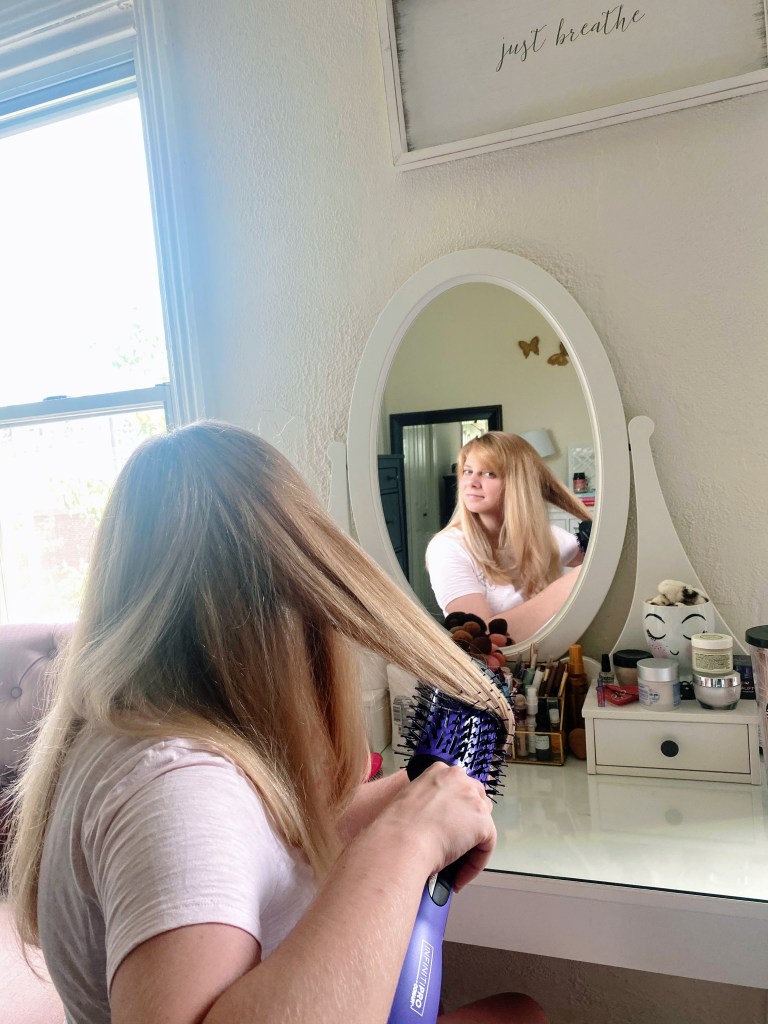 My normal hair dryer is collecting dust on a shelf right now because this hot air brush is all I need to easily and quickly dry my hair! I always use a heat protectant spray before using any hot tools and since switching to a Wet Brush I don’t have any knots in my hair. After waiting for my hair to air dry as long as I can, I’ll spray it with a heat protectant spray and section off my hair in sections to brush dry. I love it! It’s a perfect alternative to straightening your hair and using less heat.