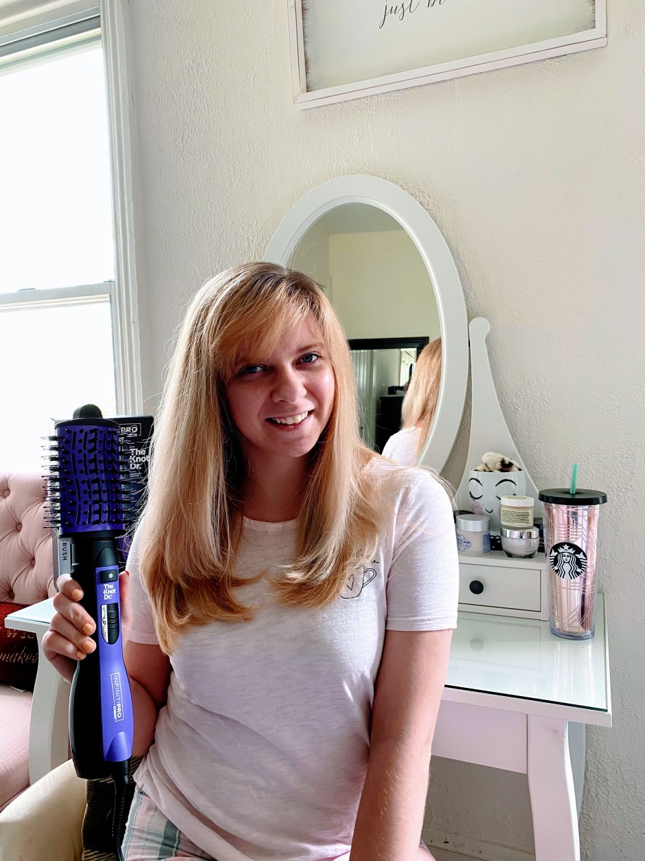 On my non hair wash days, I have been using the round brush hair dryer in the morning to curl my hair and use heat to tame the frizz caused by the humidity. During the summer months I want to look put together but don’t want to spend time in the heat doing it. Another great feature is how light it is! I’ve heard that other versions are heavy and bulky, the last thing I want is to get an arm workout while I try to dry my hair!
