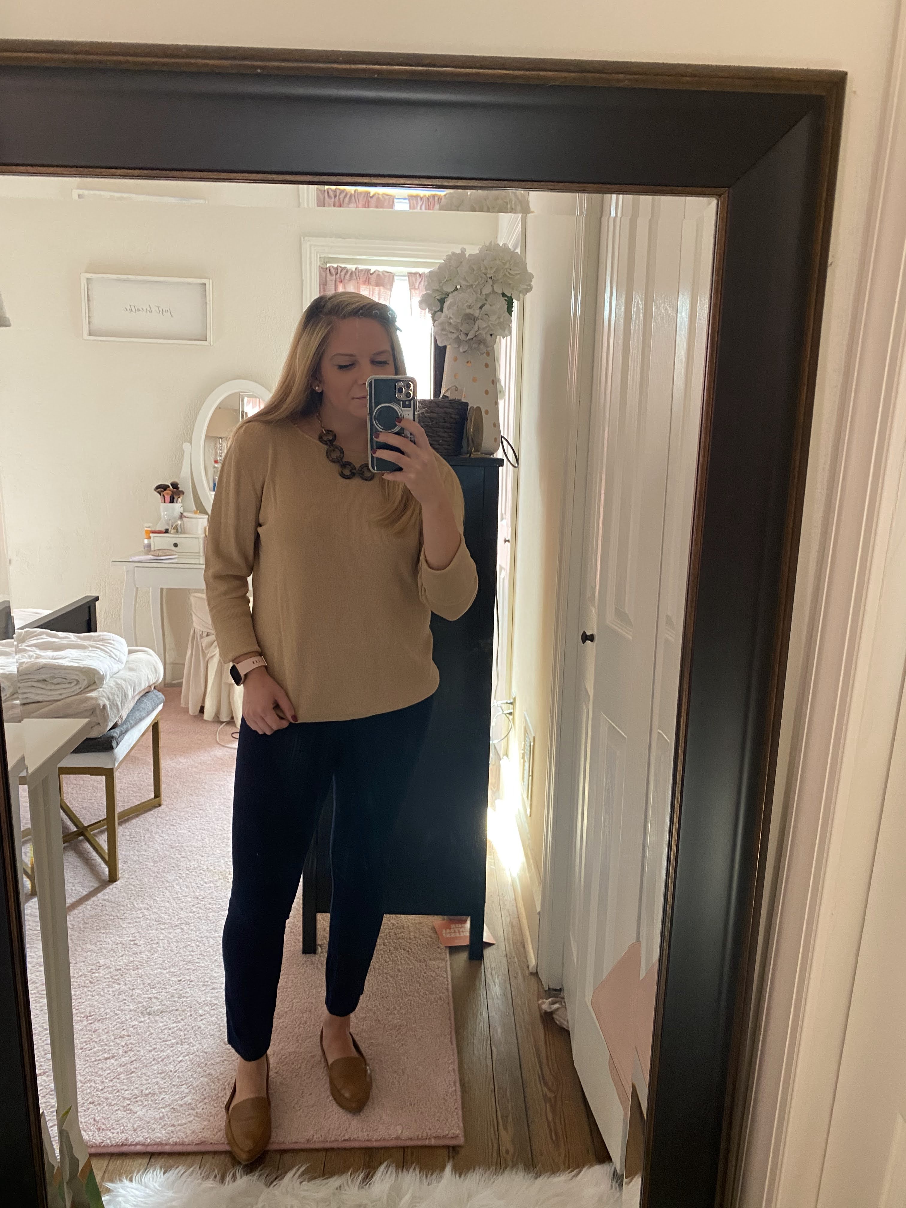 Hi all! I’ve kept it a little hush hush because I wanted to just enjoy my first few weeks without any outside pressure, but I recently started a new job. After enjoying an early retirement the last year and some months, I’m eager to get back to work and back into a routine. The first few days were hard, physically and mentally. Not being used to setting alarms or a structured eating schedule put my body into shock. My body was tired but eager to get up the next day and do it again. I’m keeping my new job private but to be intentionally vague… I work with kids in a classroom. Already my responsibilities at work are multiplying and I’m excited for the challenge. That being said, I’ve been wearing a lot of cute outfits lately! I’ve been having fun sharing my #ootd’s on Instagram each day but also thought it would be fun to do a round up on the blog too. Like many other people, my work clothes don’t fit like they used to and that has been tough to face. So it’s back to daily workouts and eating healthy to get those pants fit again! Since it’s a new job, no one has seen my clothes before so I’m trying to be smart with my money and only using what I have in my closet to get dressed. I will try to link the item or something similar if I can.