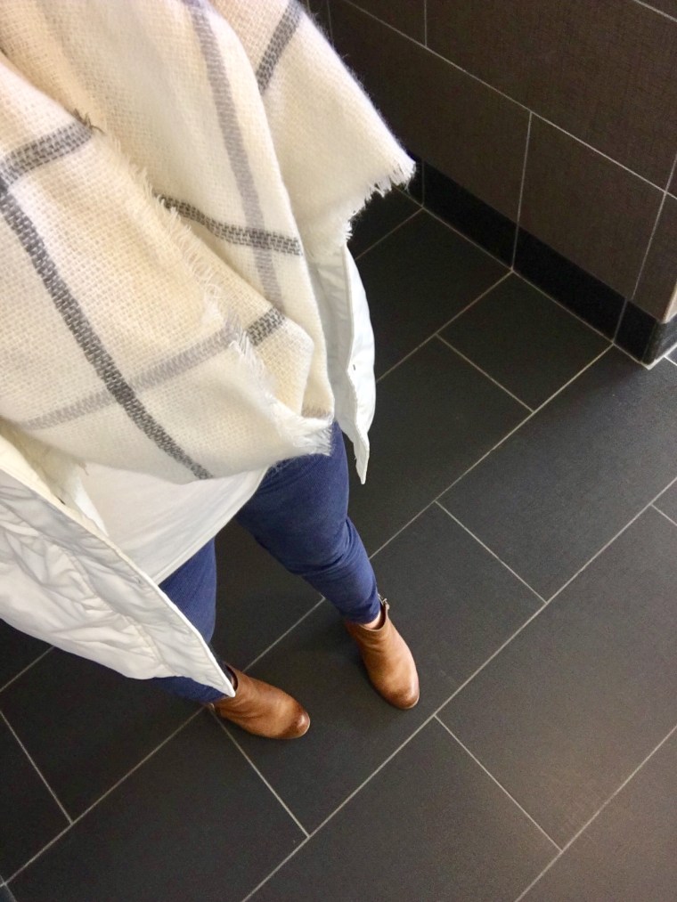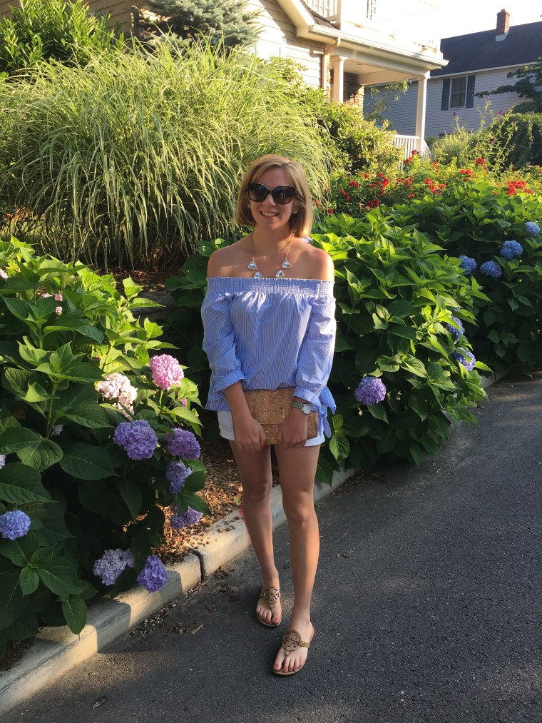 I try not to buy tops that I know will only be in style for a season and then out the next. However, this off the shoulder style looks like it will be around for a while! I wasn’t really sure how I felt about this style in the beginning. To be honest, I don’t like my shoulders because of acne and my scoliosis curve, so highlighting this feature on my body isn’t usually a priority. I went shopping a few weeks ago and saw this blue striped off the shoulder top with bows on the sleeves and knew it was coming home with me. But then it sat in my closet for weeks…. Even I, the fashionista didn’t really know how to style it.