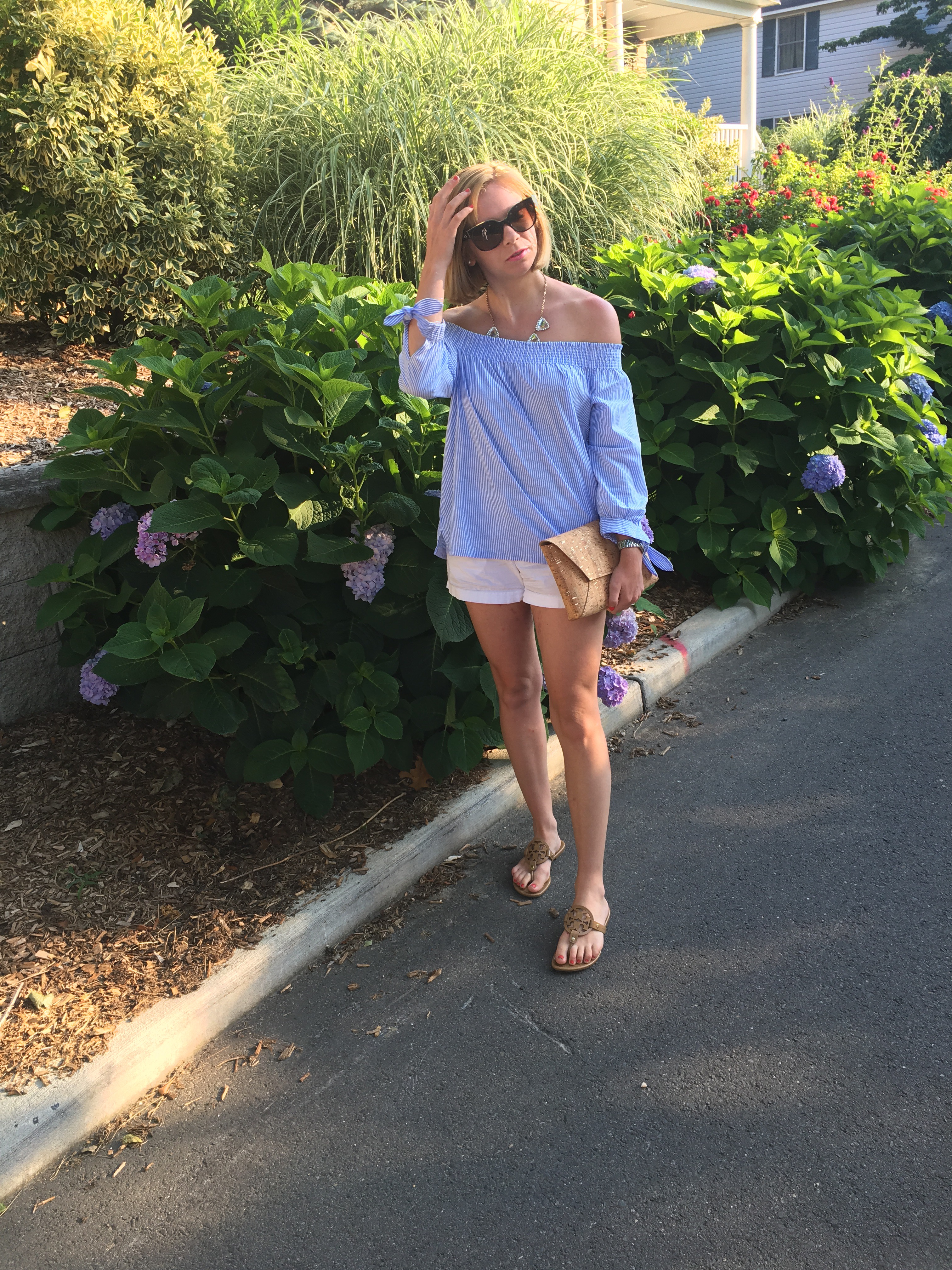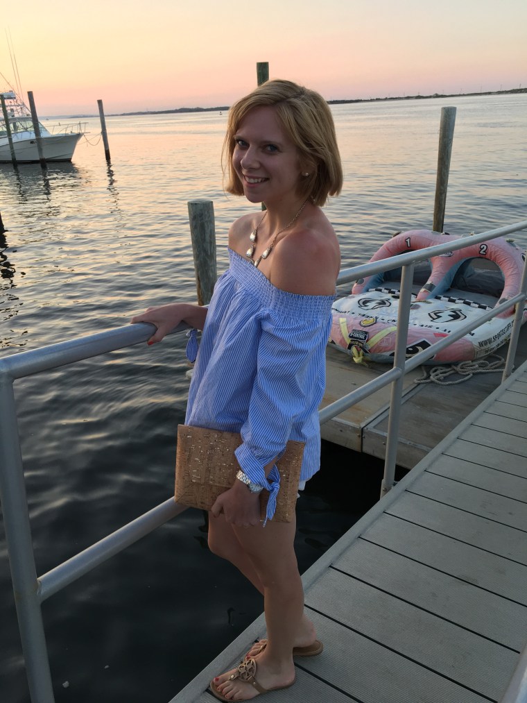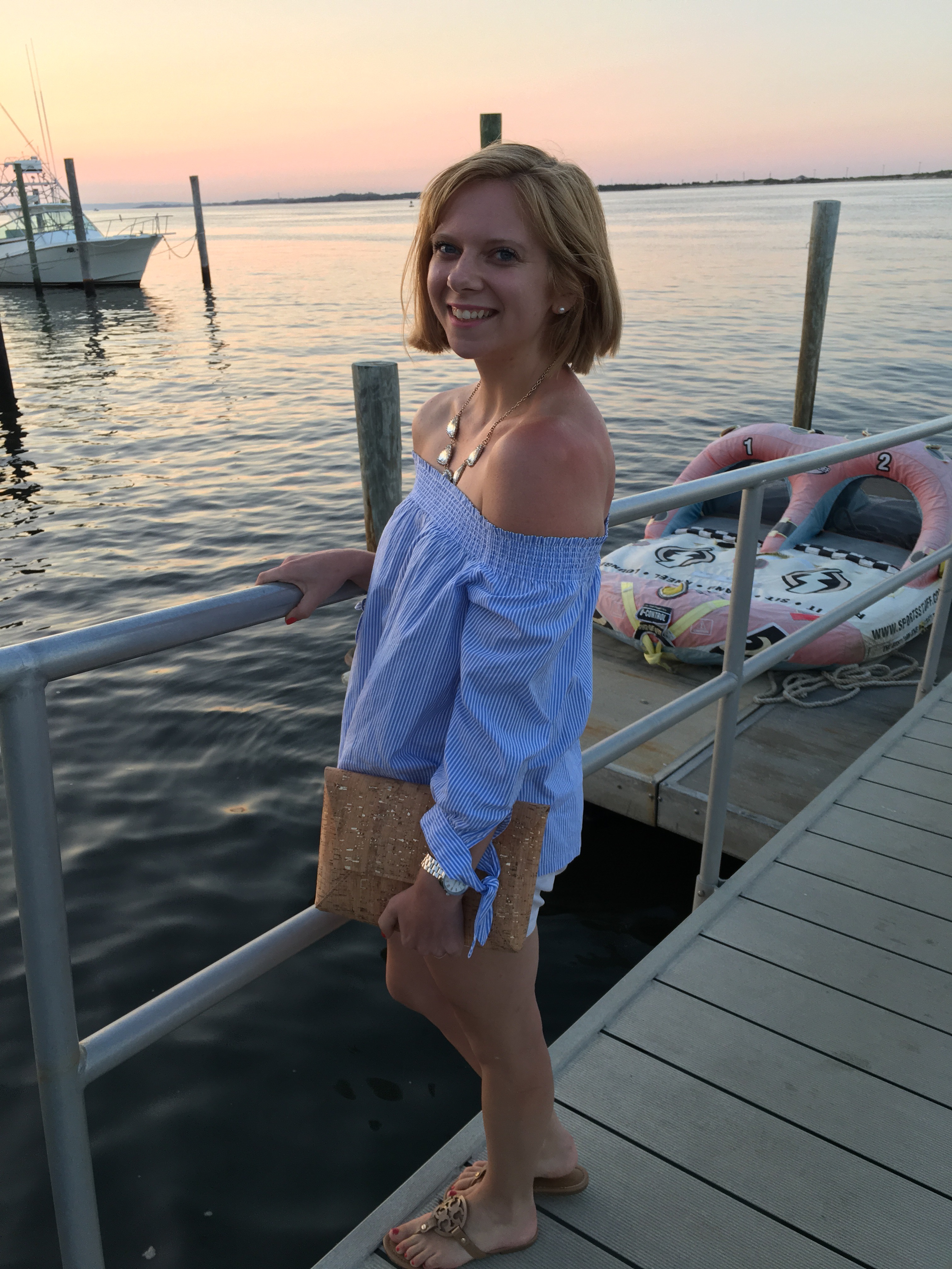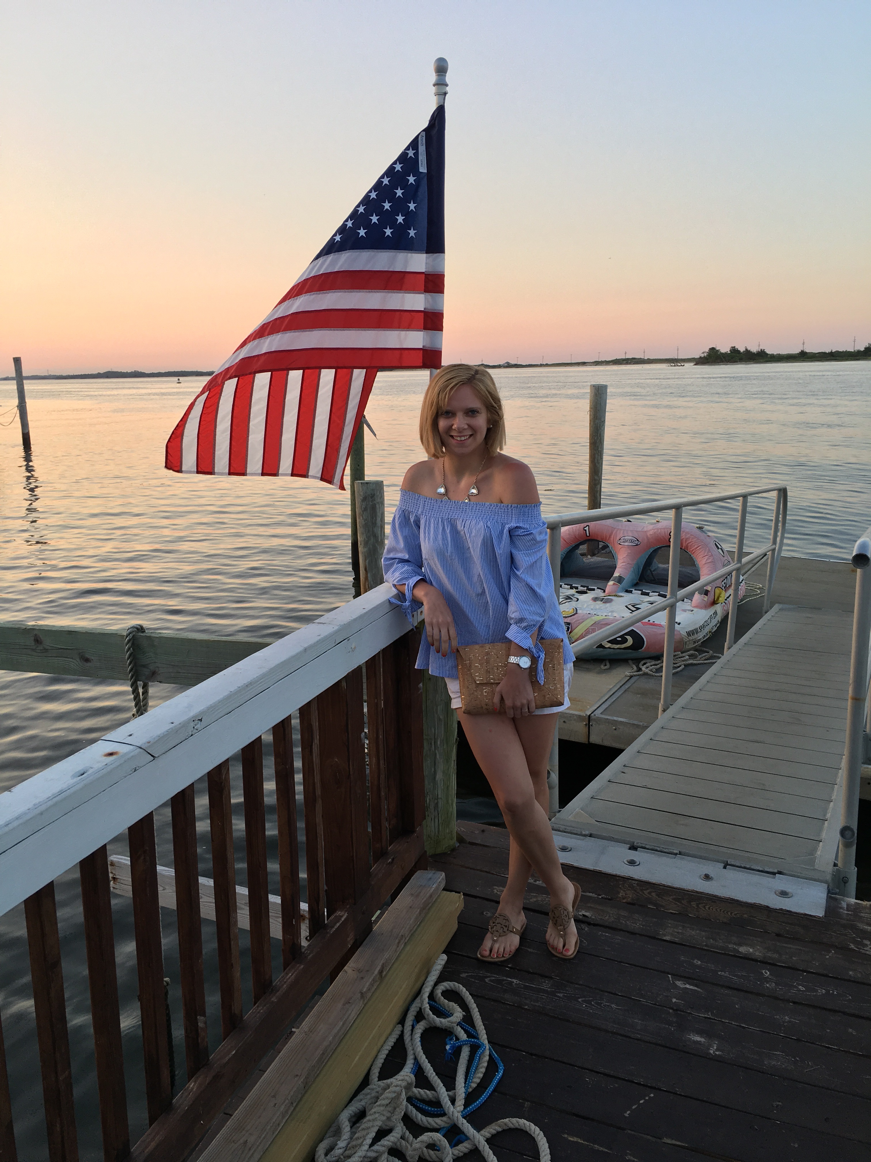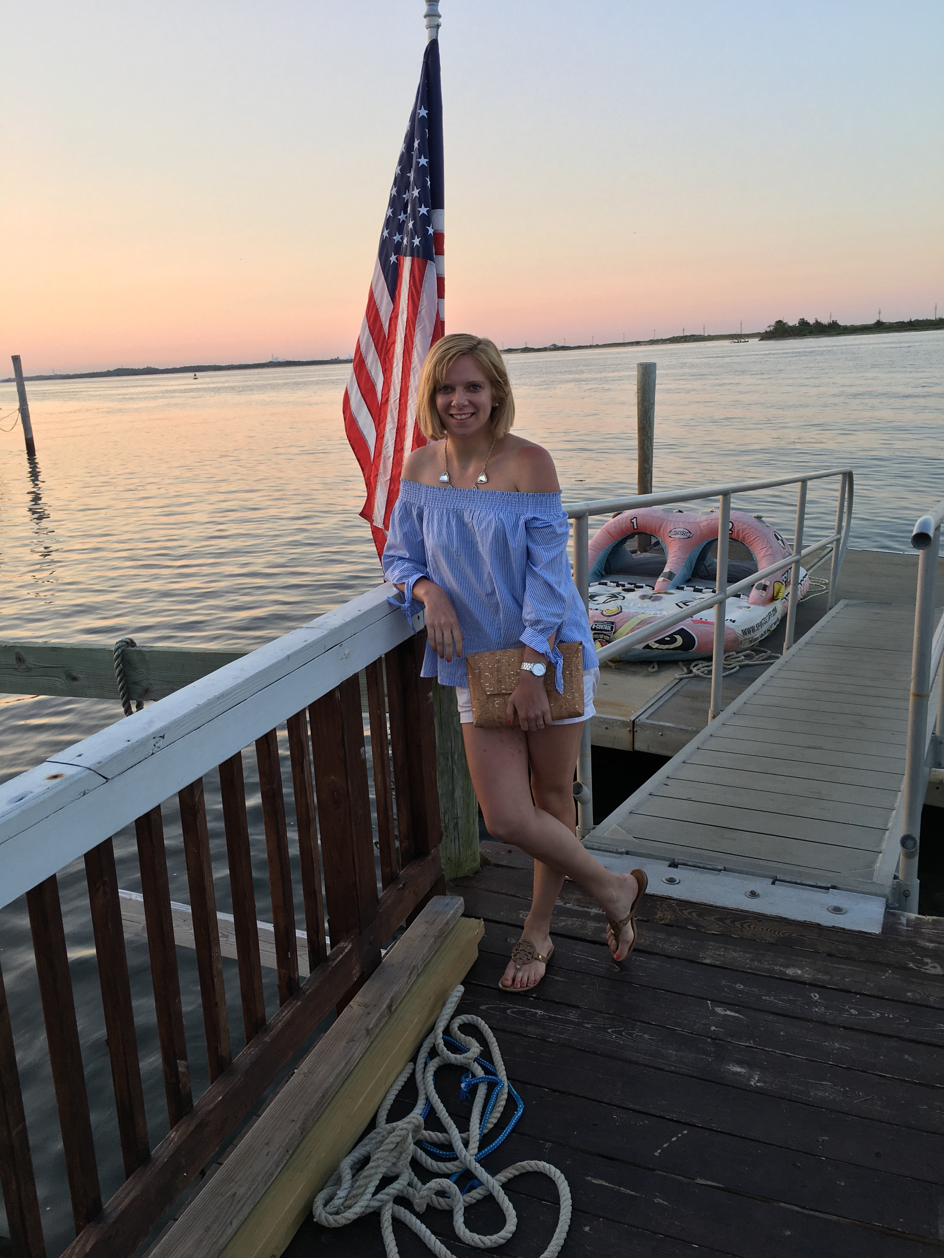 My family and I decided to end our 4th of July weekend by going to dinner on the water in Highlands, NJ. The town my mom and her family grew up in so it holds a special place in our hearts! Even though it is hot in July, anyone who lives on the water knows that after 7pm the temperature drops dramatically. I thought my long sleeve off the shoulder top would look cute and keep me warm by the water. I finally had an excuse to wear it!