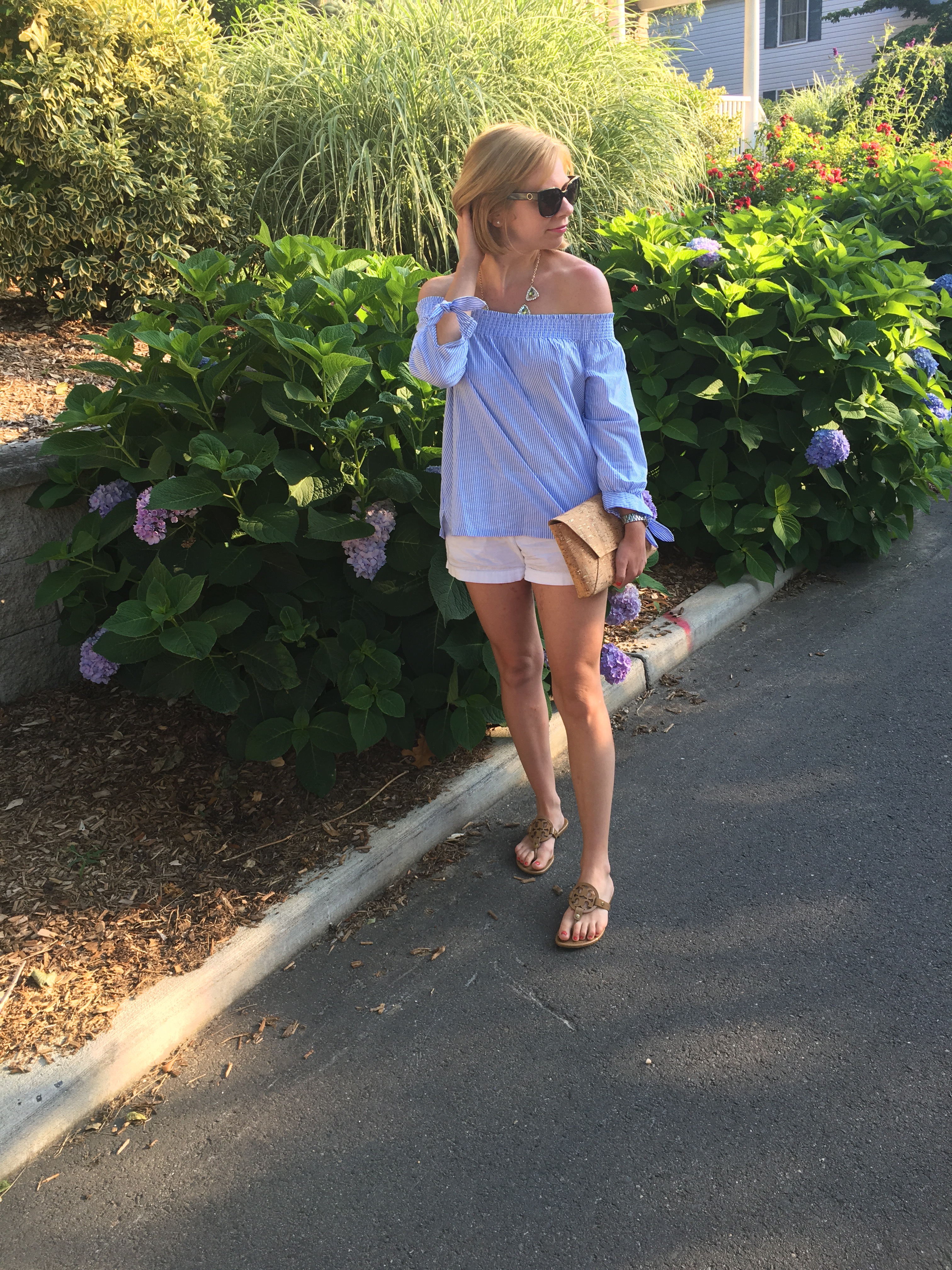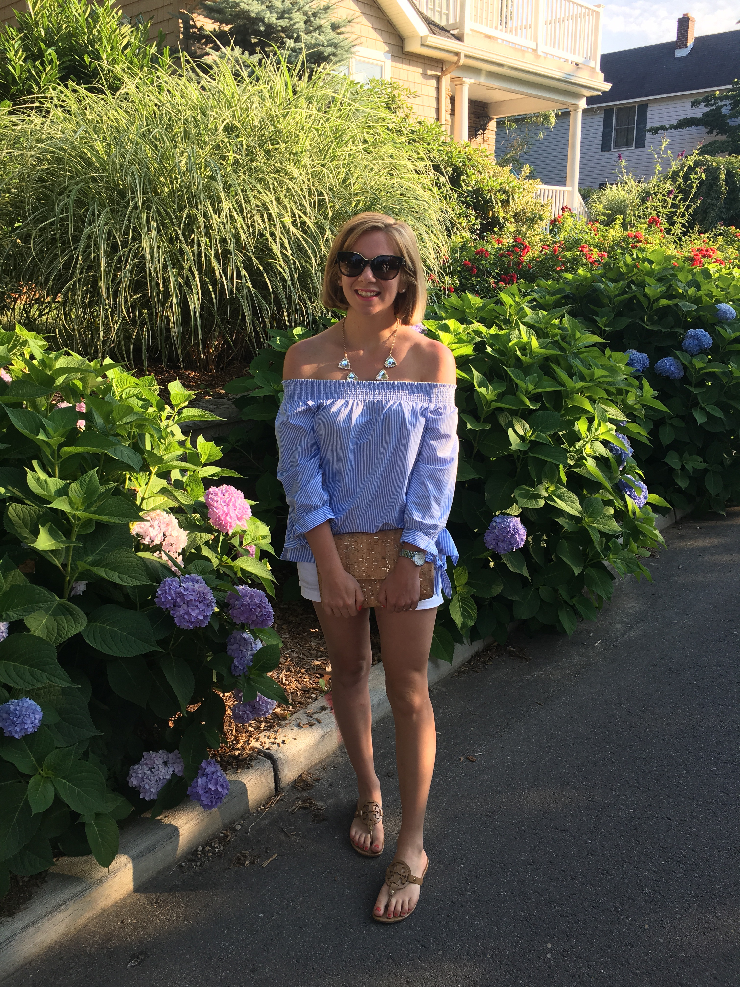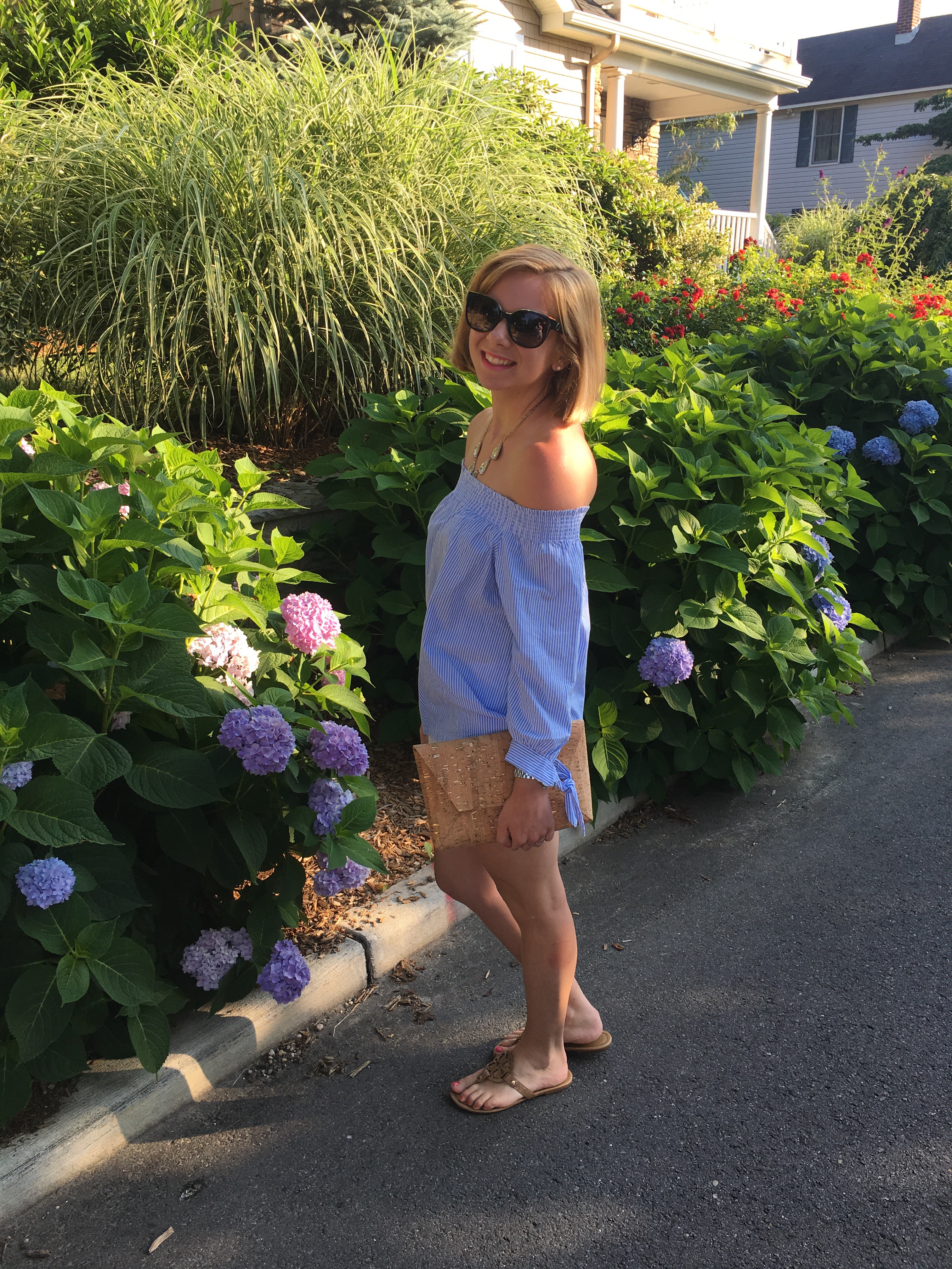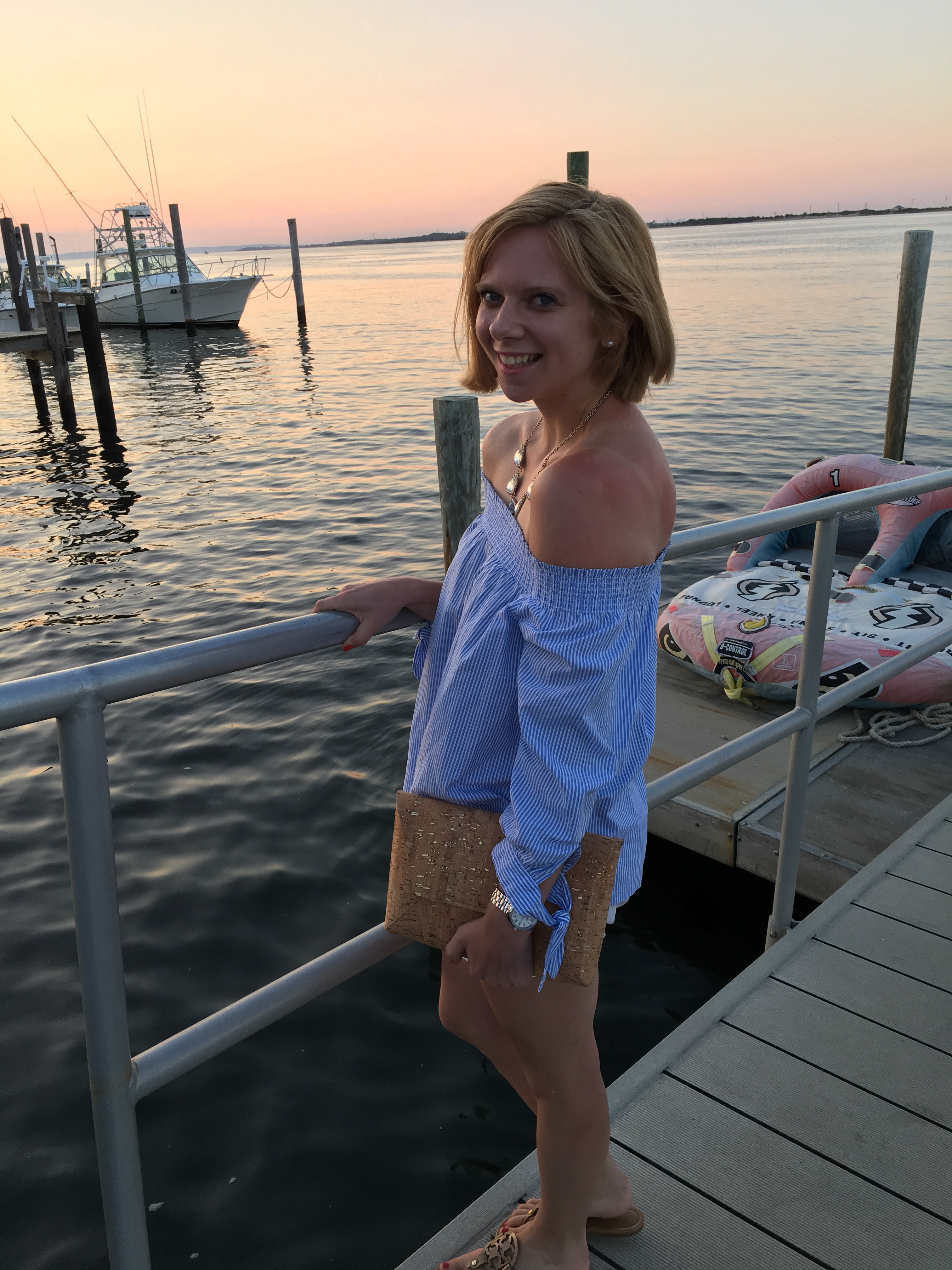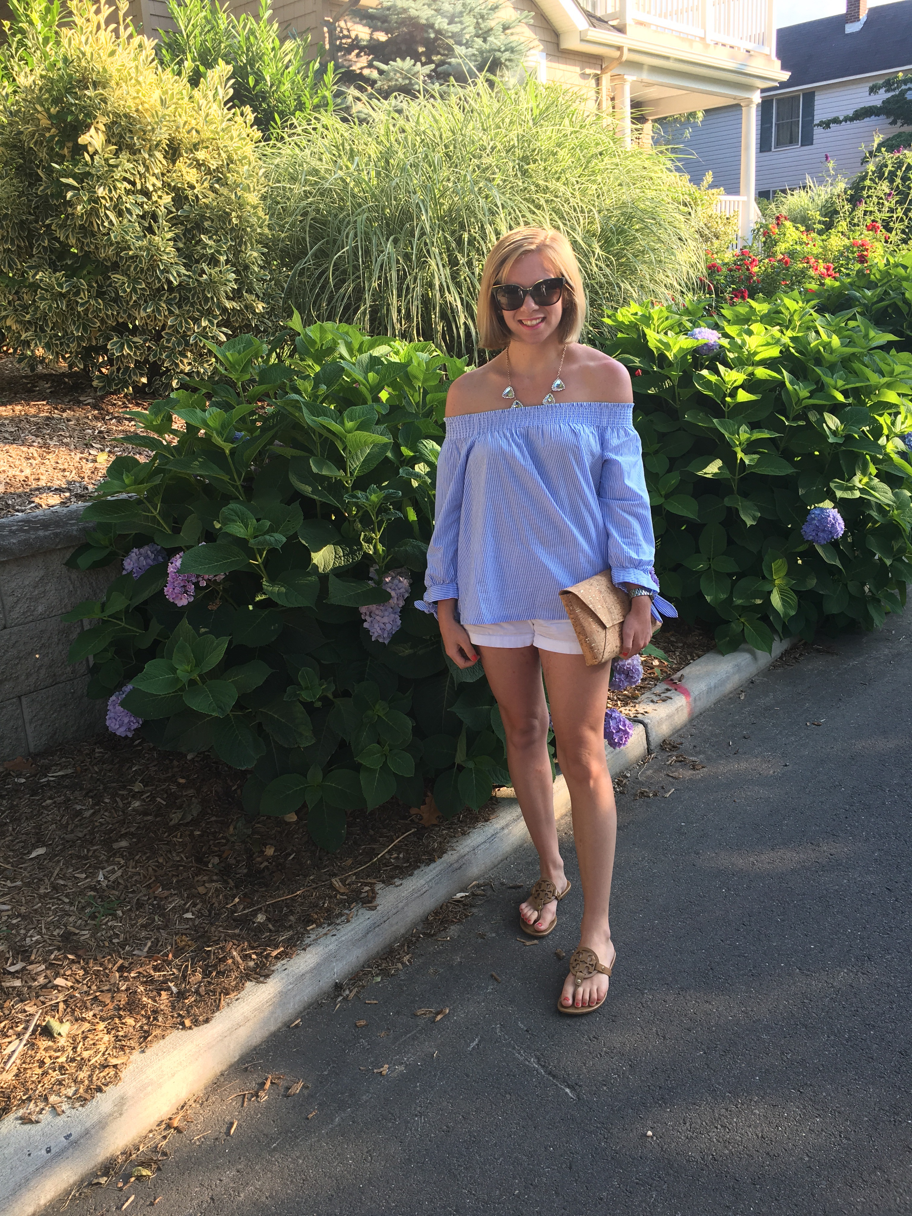 My family and I decided to end our 4th of July weekend by going to dinner on the water in Highlands, NJ. The town my mom and her family grew up in so it holds a special place in our hearts! Even though it is hot in July, anyone who lives on the water knows that after 7pm the temperature drops dramatically. I thought my long sleeve off the shoulder top would look cute and keep me warm by the water. I finally had an excuse to wear it!