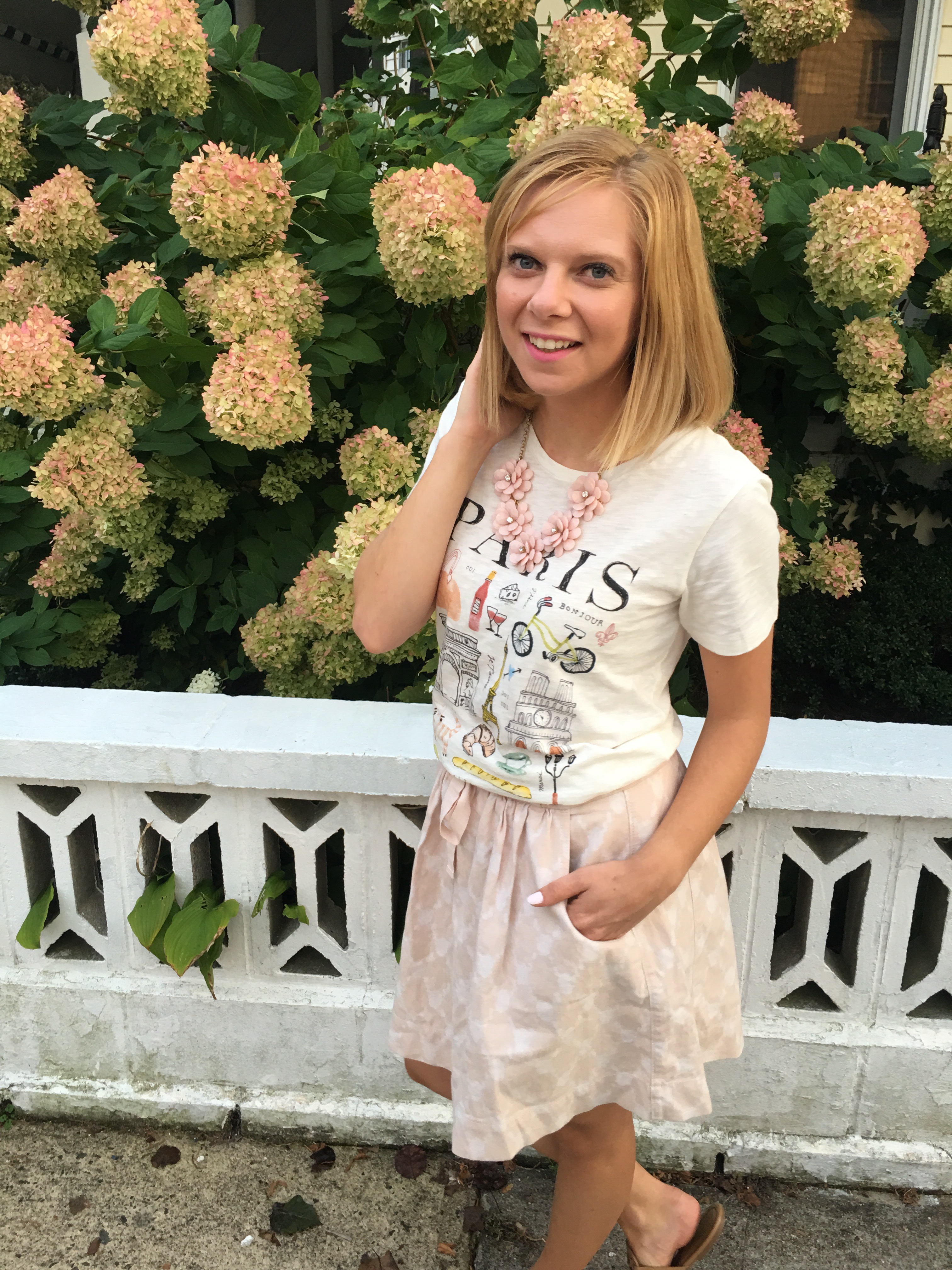 I think this shirt was on the shelf for 12 hours before I purchased it! In the efforts to have a more minimal closet, I try to stay away from graphic tees. However, this Paris Collector Tee was too cute not to add to my closet. By pairing it with my J. Crew skirt and adding a statement necklace, I was able to dress it up for work. There are days I just wanna throw on jeans and a t shirt, but not look like a slob. So this is perfect for those lazy days!