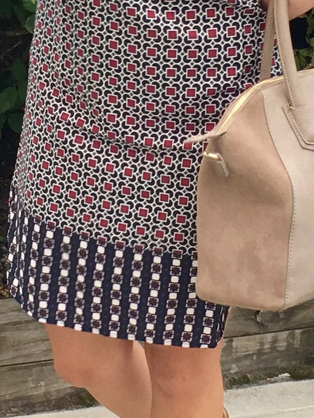 I recently purchased this dress because it is a great fall transition dress. I wore it to work last week with my brown cardigan and was able to take off the cardigan when the weather got hot again later that day. This weather has been so bipolar lately I really don’t know how to dress! I plan to wear it throughout the fall and pair it with tights so I can wear it in the winter. Last week I wore my Tory Burch Miller Sandals and plan to wear it with my brown flats later in the fall.