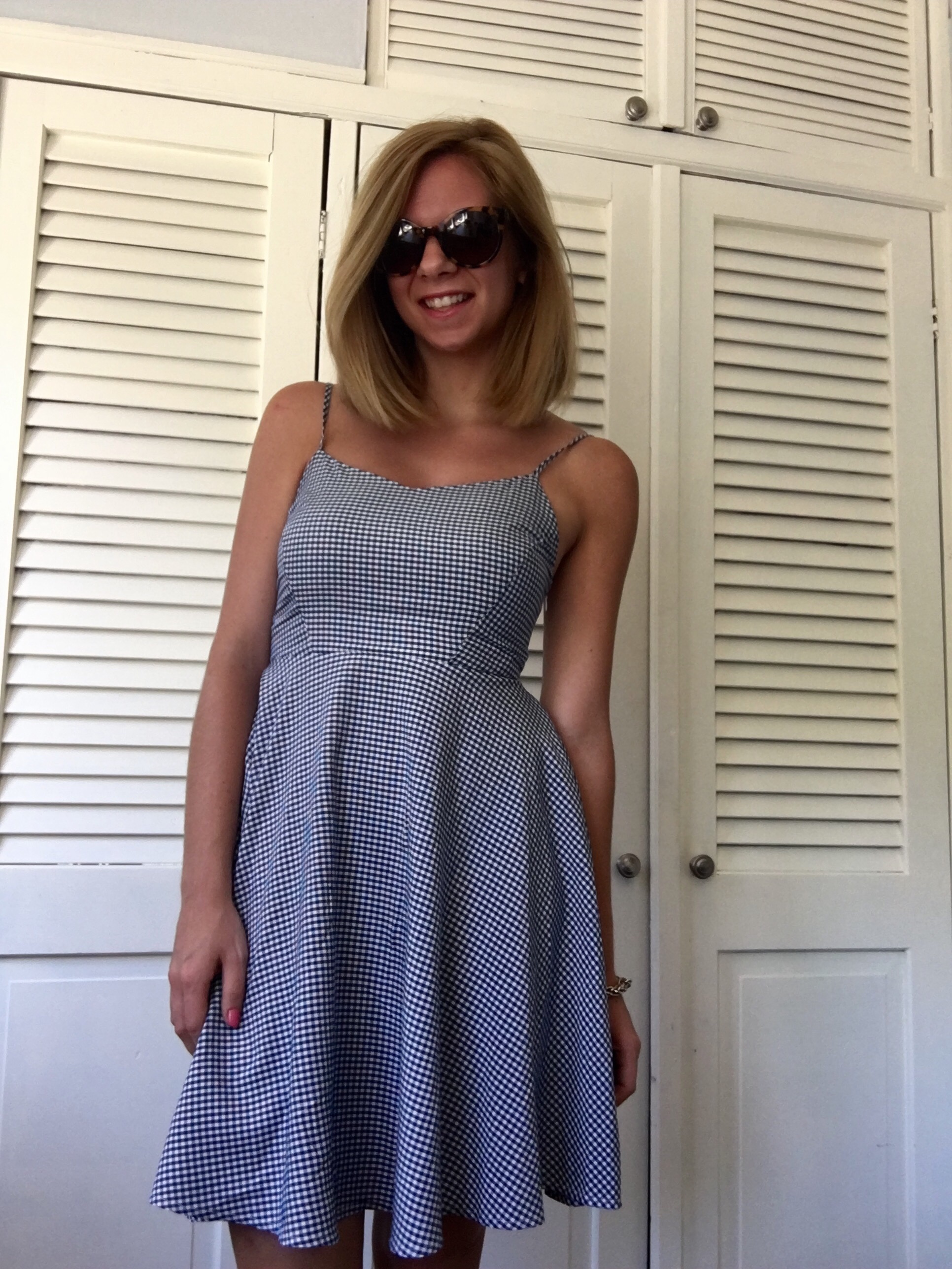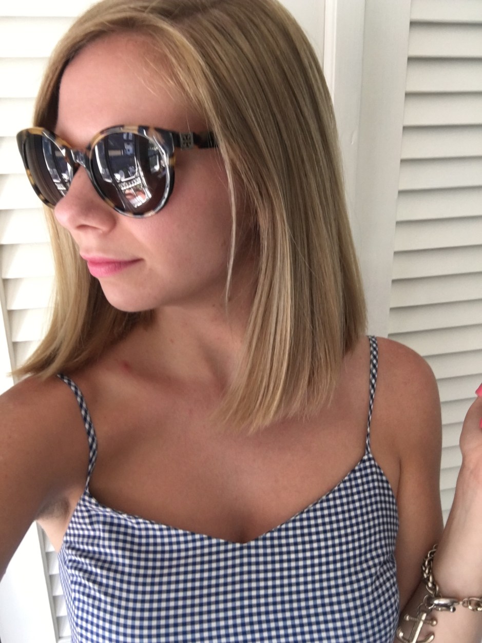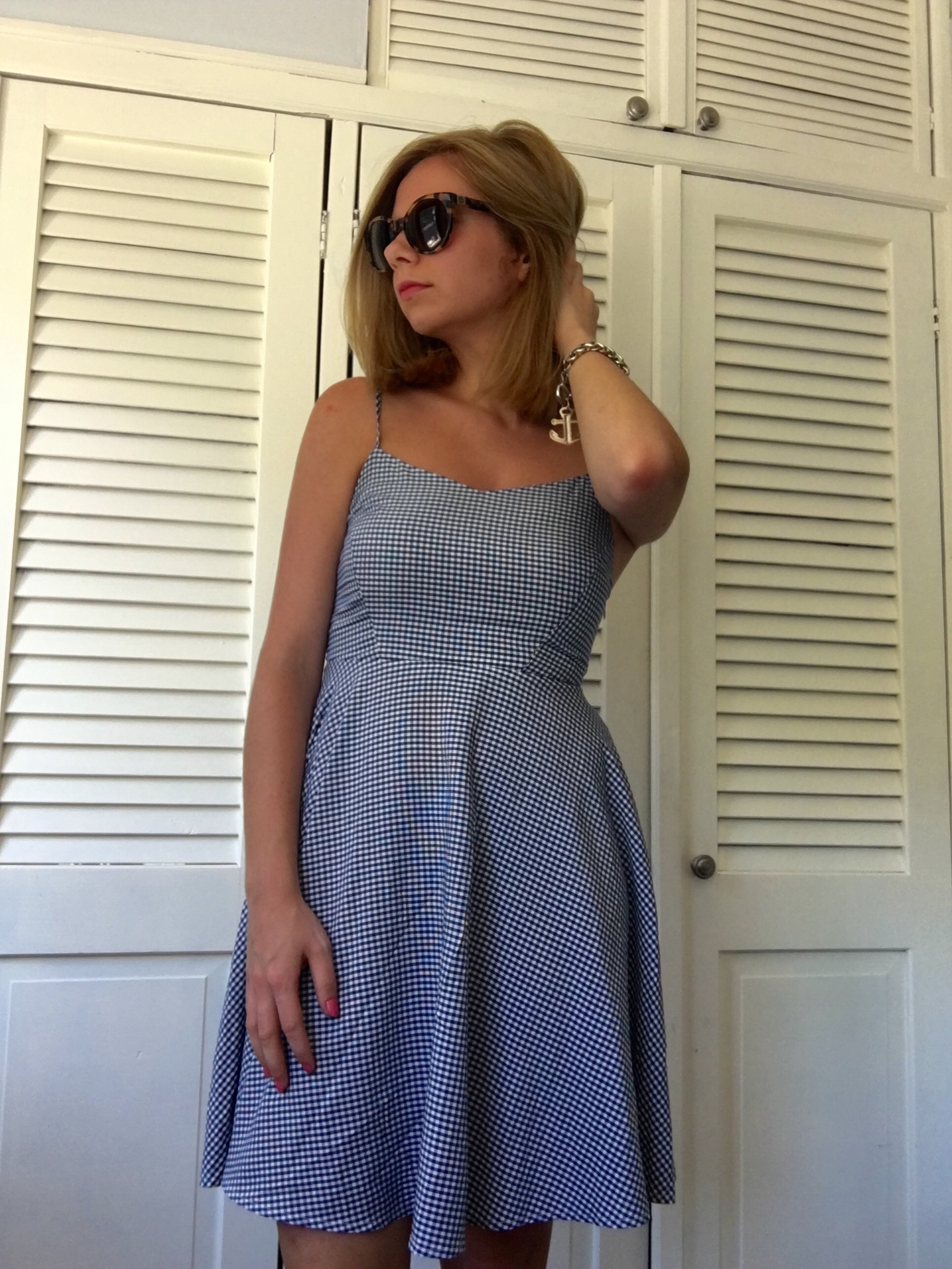 For my accessories I have worn it with basic flip flops and my J Crew gold sandals for the office to make it a little more dressy. I’m currently obsessed with gold so I wore my gold anchor bracelet from H&M a few seasons ago to keep the look simple. I “borrowed” my moms Tory Burch sunglasses and there is a good chance she is not getting them back. I love these types of dresses because with a few accessories it can be a beach dress or a comfortable work outfit.