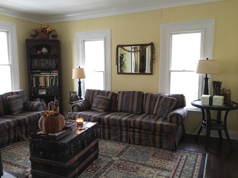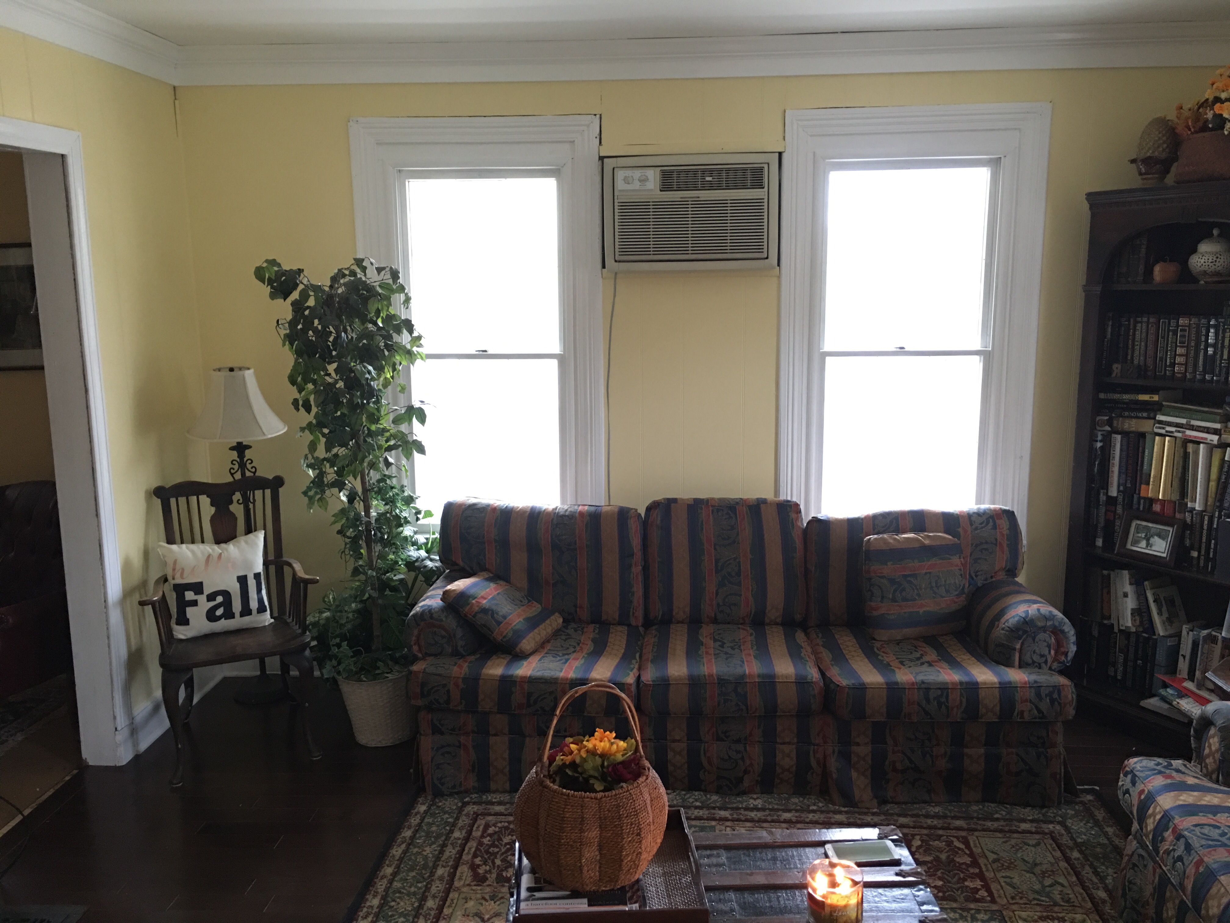 I started by removing all of the furniture from this room to start fresh.With everything out of the space, it was easier to envision what I wanted the space to look like. At first I wanted to paint the space white, a complete opposite of the dark brown that was there before. The space gets very little natural lighting so I needed to stay away from dark colors. I then decided on a Behr Ultra Eggshell color that wasn’t completely white but still had a bit of color.